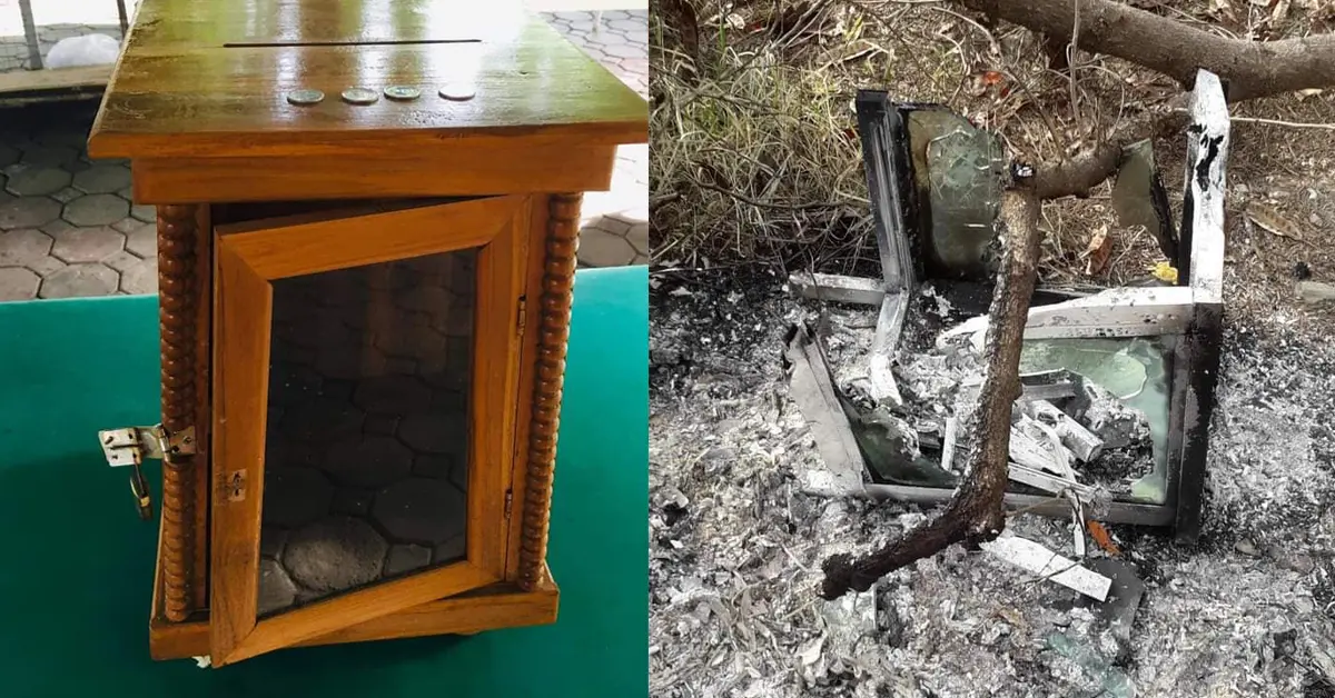 3 วัยรุ่นแสบ! ขโมยตู้บริจาควัด 7 ตู้ กลางดึก สุดท้ายเจอเอาตู้ไปเผาข้างวัด! ยังดีที่กลับมาคืนตู้ 1 ใบ กับเงินอีก 4 บาท