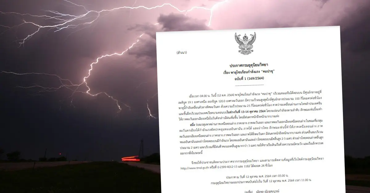 กรมอุตุนิยมวิทยา ออกประกาศเตือน พายุลูกใหม่ ‘คมปาซุ‘ ในทะเลจีนใต้ คาดฝนตกหนักถึงหนักมากในบางพื้นที่ 13-14 ต.ค. นี้