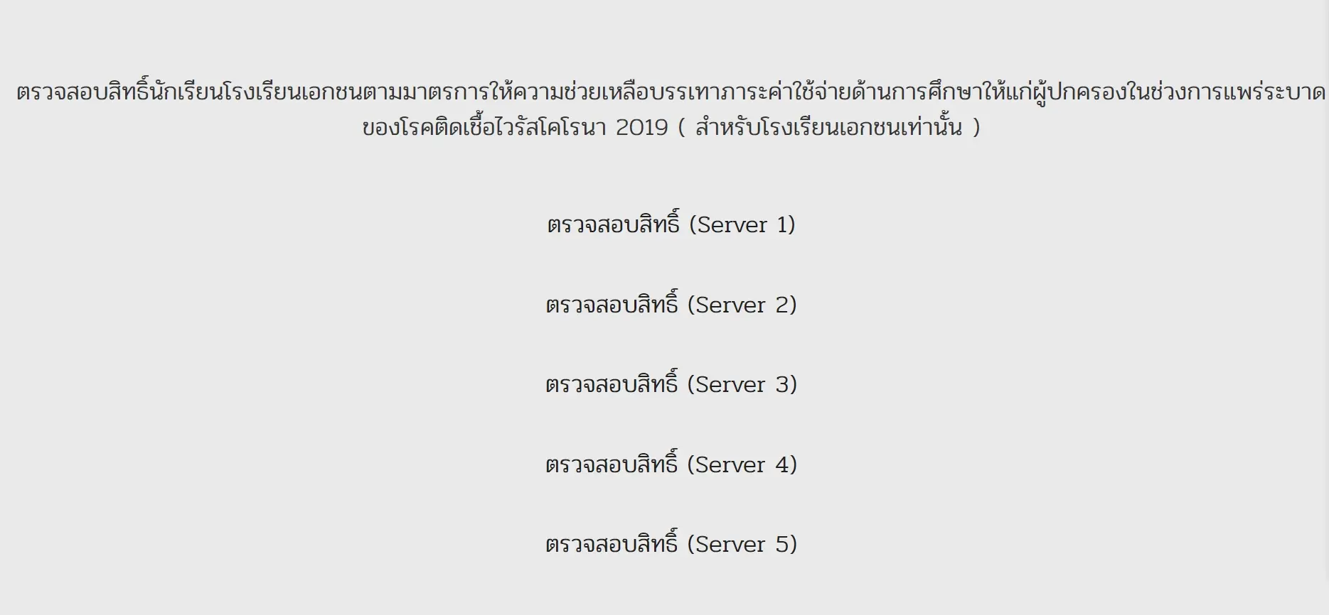 สำหรับนักเรียนในสถานศึกษาสังกัด สพฐ. สามารถตรวจสอบสิทธิ์ได้ที่เว็บไซต์ https://student.edudev.in.th โดยจะต้องกรอกเลขประจำตัวประชาชน และเลขประจำตัวนักเรียน