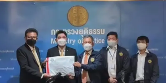 ว่าที่ร้อยตรีธนกฤต จิตรอารีย์รัตน์ เลขานุการรัฐมนตรีว่าการกระทรวงยุติธรรม พ.ต.อ.ทรงศักดิ์ รักศักดิ์สกุล ผู้อำนวยการสถาบันนิติวิทยาศาสตร์ ผศ.นพ.วรวีร์ ไวยวุฒิ รองผู้อำนวยการสถาบันนิติวิทยาศาสตร์ แถลงผลการผ่าพิสูจน์ร่าง แตงโม รอบ 2 ที่กระทรวงยุติธรรม เมื่อวันที่ 31 มีนาคม 2565 โดยมี ทนายเดชา นายเดชา กิตติวิทยานันท์ ทนายความของ แม่แตงโม แม่ภนิดา ศิระยุทธโยธิน ร่วมแถลง