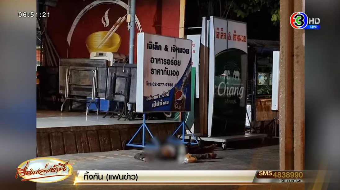 ที่เกิดเหตุบริเวณทางเท้าหน้าร้านข้าวต้ม พบร่างชาย อายุ 35-40 ปี นอนหายใจรวยริน ทำได้เพียงกระพริบตา ไม่สามารถพูดจาสื่อสารได้ สภาพสวมเสื้อยืดแขนยาวสีดำ กางเกงขายาวสีดำ สวมหน้ากากอนามัย ไม่สวมรองเท้า ข้างกายพบกล่องข้าวและขวดน้ำเปล่า โดยทาง ส.ต.ท.เฉลิมชัย ได้พยายามประสานกับหน่วยงานที่เกี่ยวข้องเพื่อมารับร่างชายคนดังกล่าวส่ง รพ. แต่ไม่มีหน่วยงานใดมารับในช่วงเวลาดังกล่าวได้