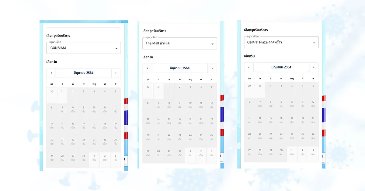 ล่าสุด สถานที่ วัน และ เวลา ในเดือนมิถุนายน เริ่มเต็มไปหลายที่แล้ว ส่วนใหญ่ จะเป็นสถานที่ใกล้แหล่งชุมชน และ เป็นสถานที่ที่เป็นที่รู้จัก ขณะนี้ลำดับการจองวัคซีนในเดือนมิถุนายน เต็มแล้วในบางพื้นที่ เช่น the mall บางแค , the mall บางกะปิ ,ICONSIAM, Central Plaza ลาดพร้าว , Central Plaza ปิ่นเกล้า , ธัญญาพาร์ค ส่วนเดือนกรกฎคมยังมีเหลือให้จองอีกเยอะ