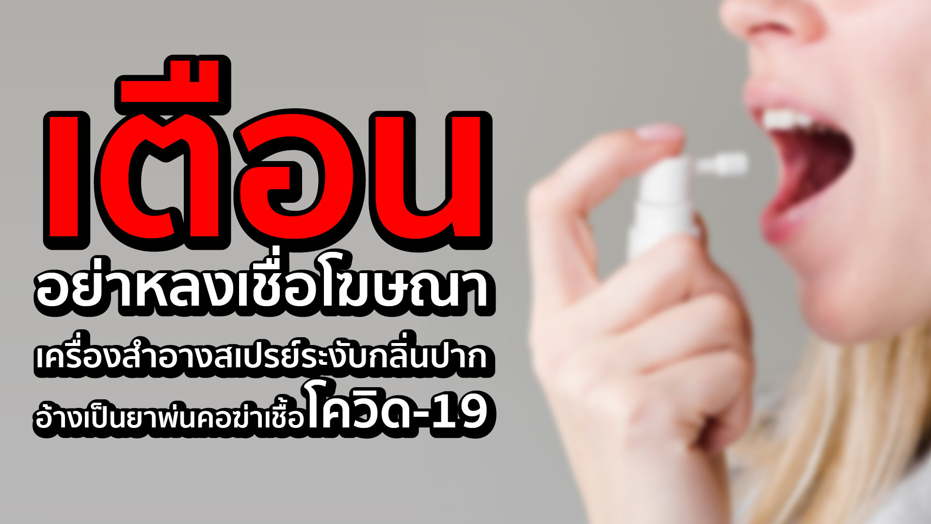 อย. เตือน อย่าหลงเชื่อโฆษณาเครื่องสำอางสเปรย์ระงับกลิ่นปาก แอบอ้างเป็น ยาพ่นคอฆ่าเชื้อโควิด อาจเสียโอกาสในการรักษาโรค ทำให้ป่วยมากขึ้น