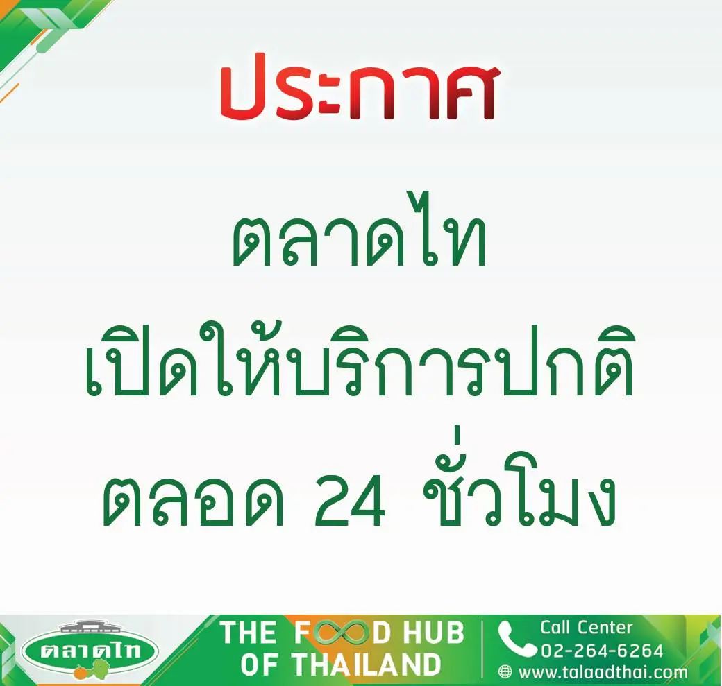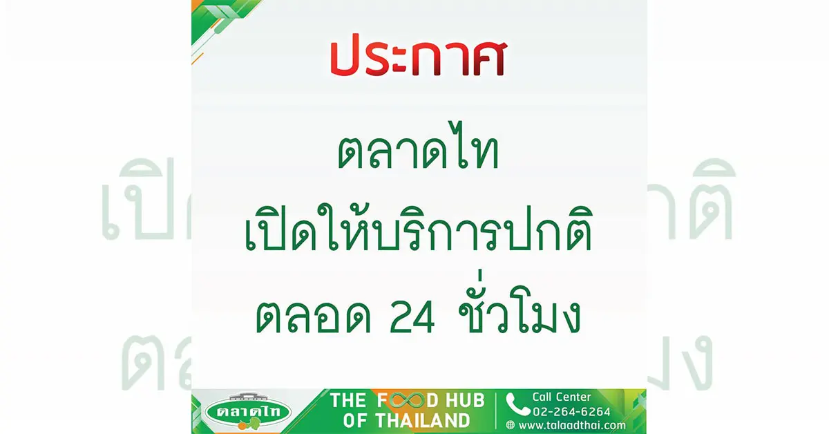 วันนี้ ตลาดไท ประกาศ!! เปิดบริการตามปกติ พร้อมให้บริการ ตลอด 24 ชั่วโมง และ เปิดให้บริการทุกวัน ทุกโซนในตลาดไท