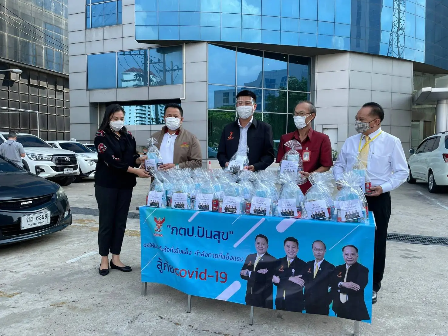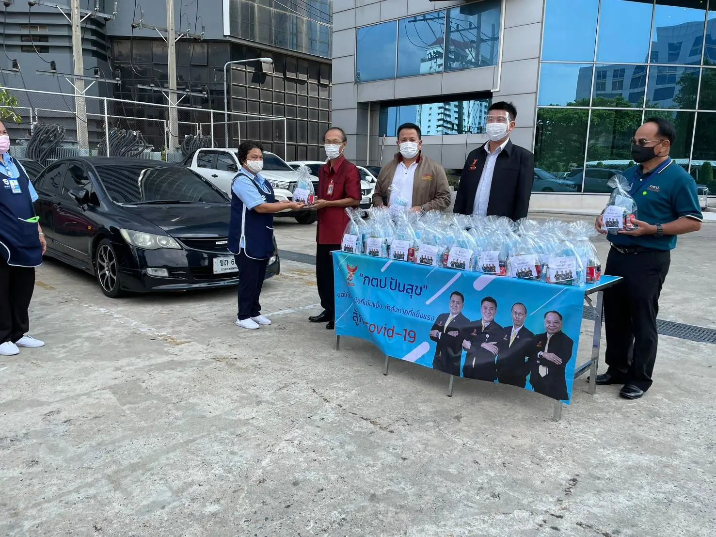 โดยได้มอบสิ่งของจำเป็นเช่นอาหารแห้ง นม หน้ากากและเจลล้างมือ วันละ 100 ชุด ตลอดระยะเวลา 1 เดือน โดยเริ่มตั้งแต่เดือนพฤษภาคมเป็นต้นไป ณ สำนักงานคณะกรรมการติดตามเเละประเมินผล อาคาร ไอทาวเวอร์ ถนนวิภาวดี