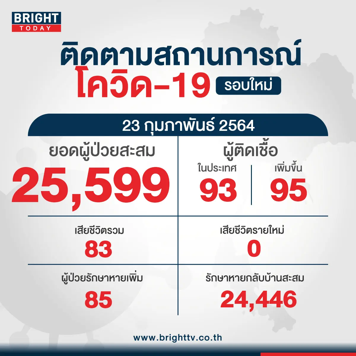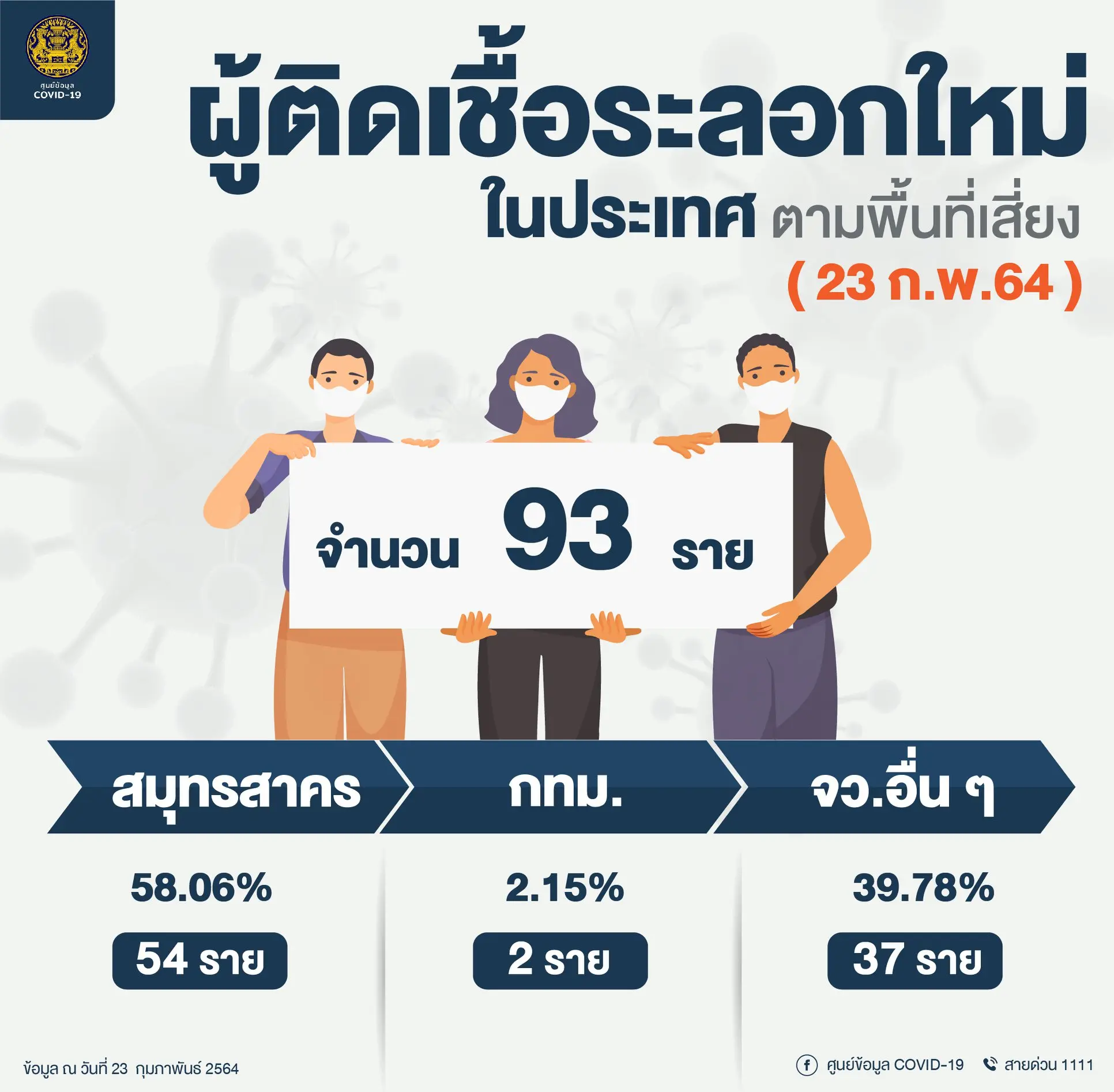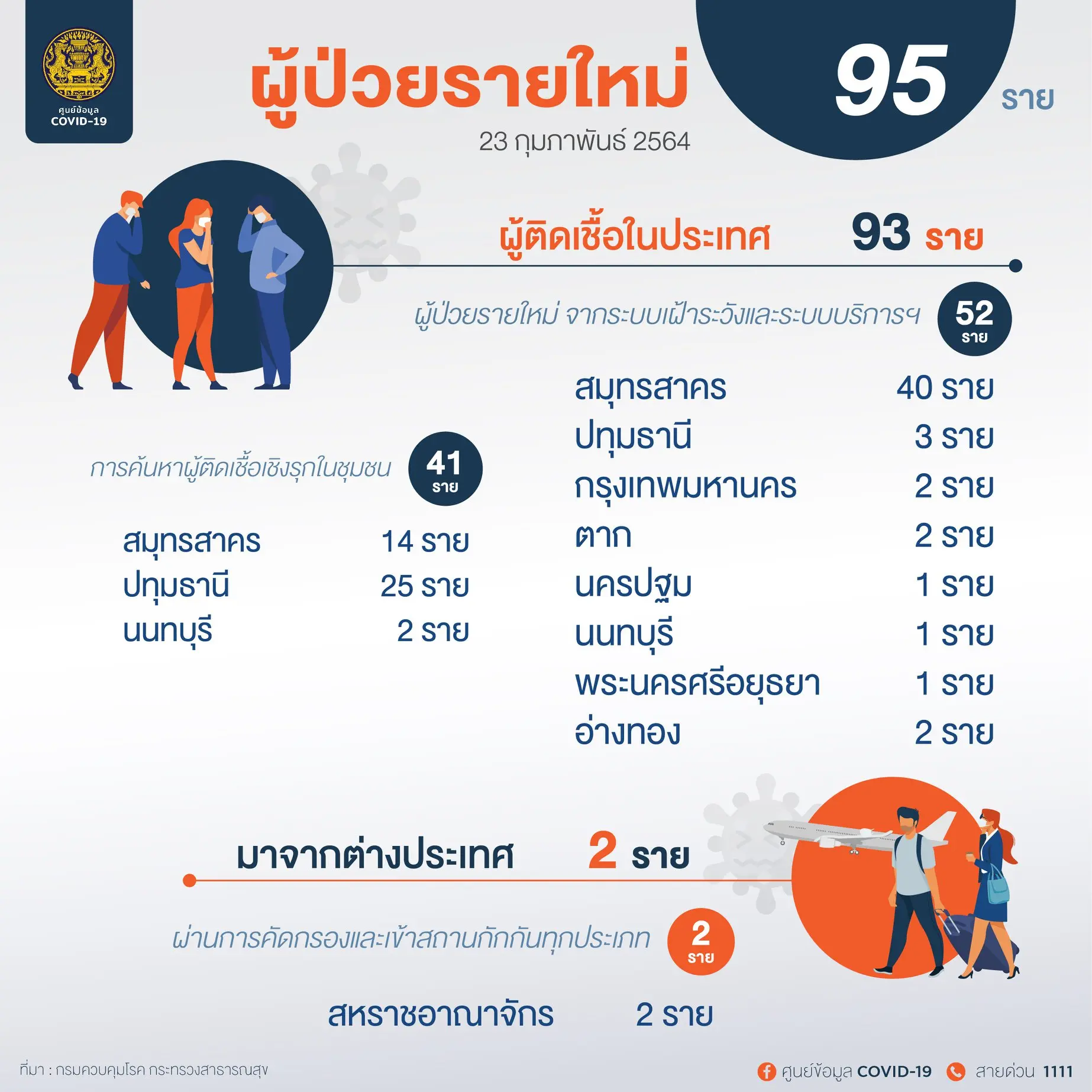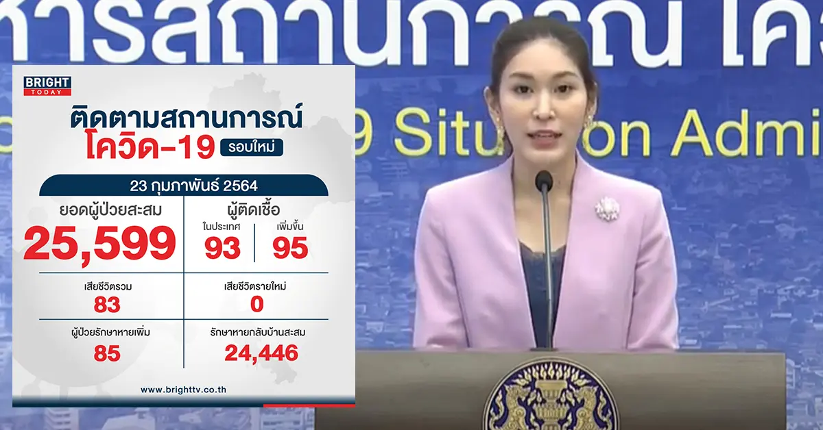 โควิดวันนี้ — (23 ก.พ. 64) ที่ทำเนียบรัฐบาล พญ.พรรณประภา ยงค์ตระกูล หรือ หมอบุ๋ม ผู้ช่วยโฆษกศูนย์บริหารสถานการณ์การแพร่ระบาดของโรคติดเชื้อไวรัสโคโรนา 2019 (โควิด-19) หรือ ศบค. แถลงสถานการณ์โควิด-19 ในประเทศไทย ดังนี้