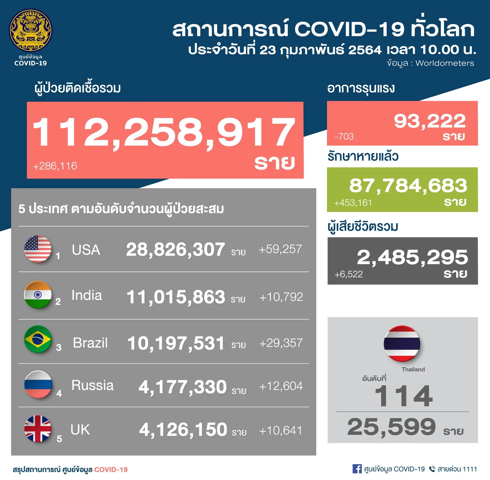 ยอดผู้ติดเชื้อรวม 112,258,917 ราย