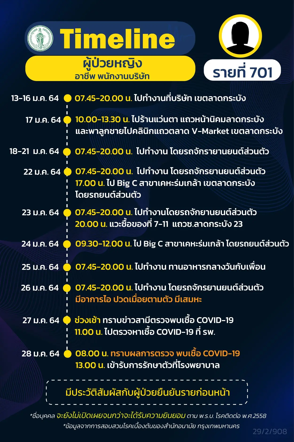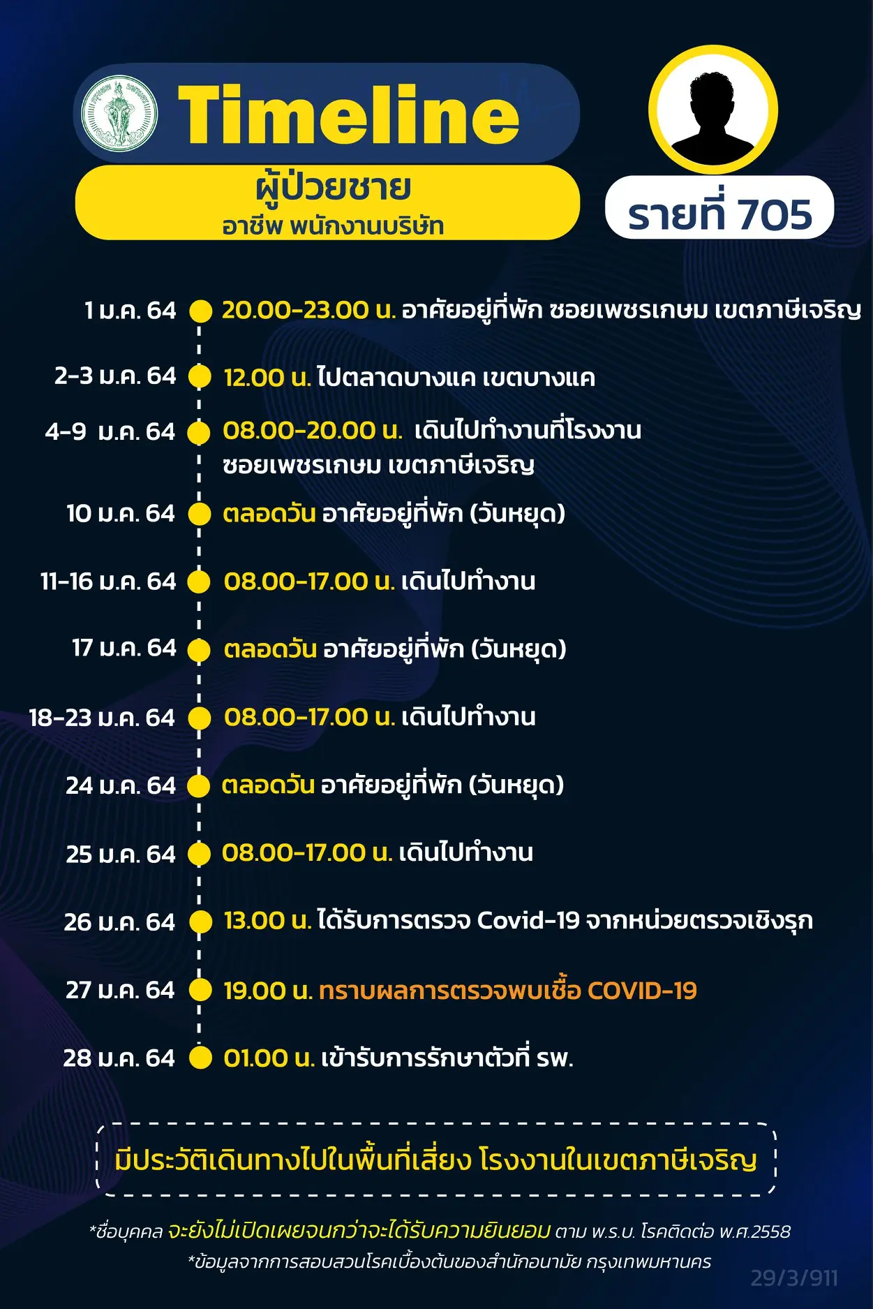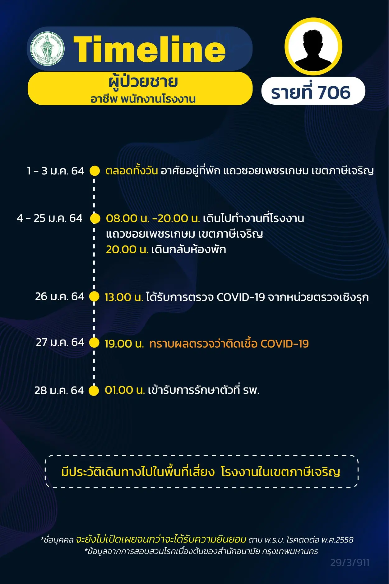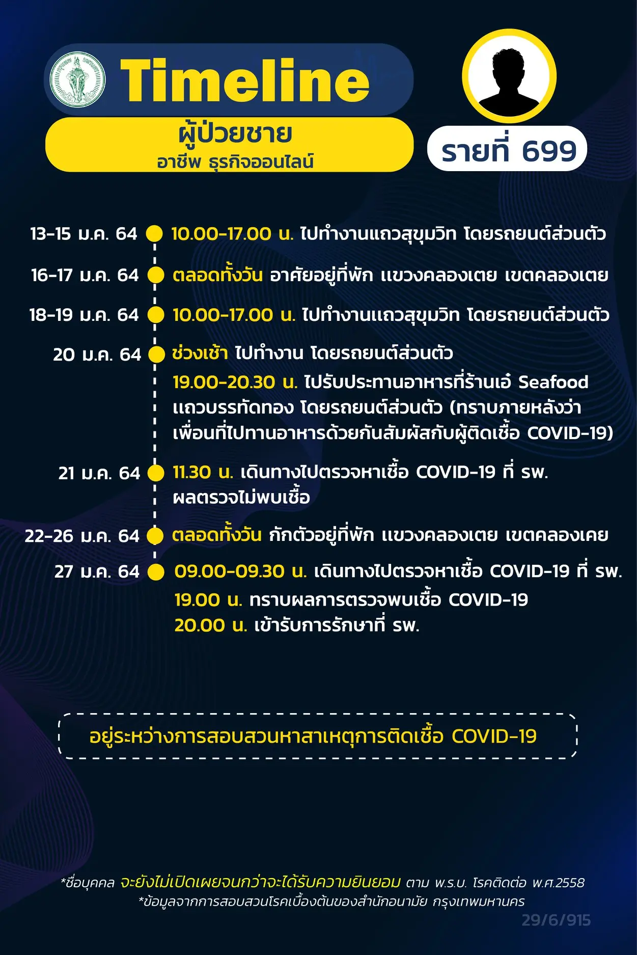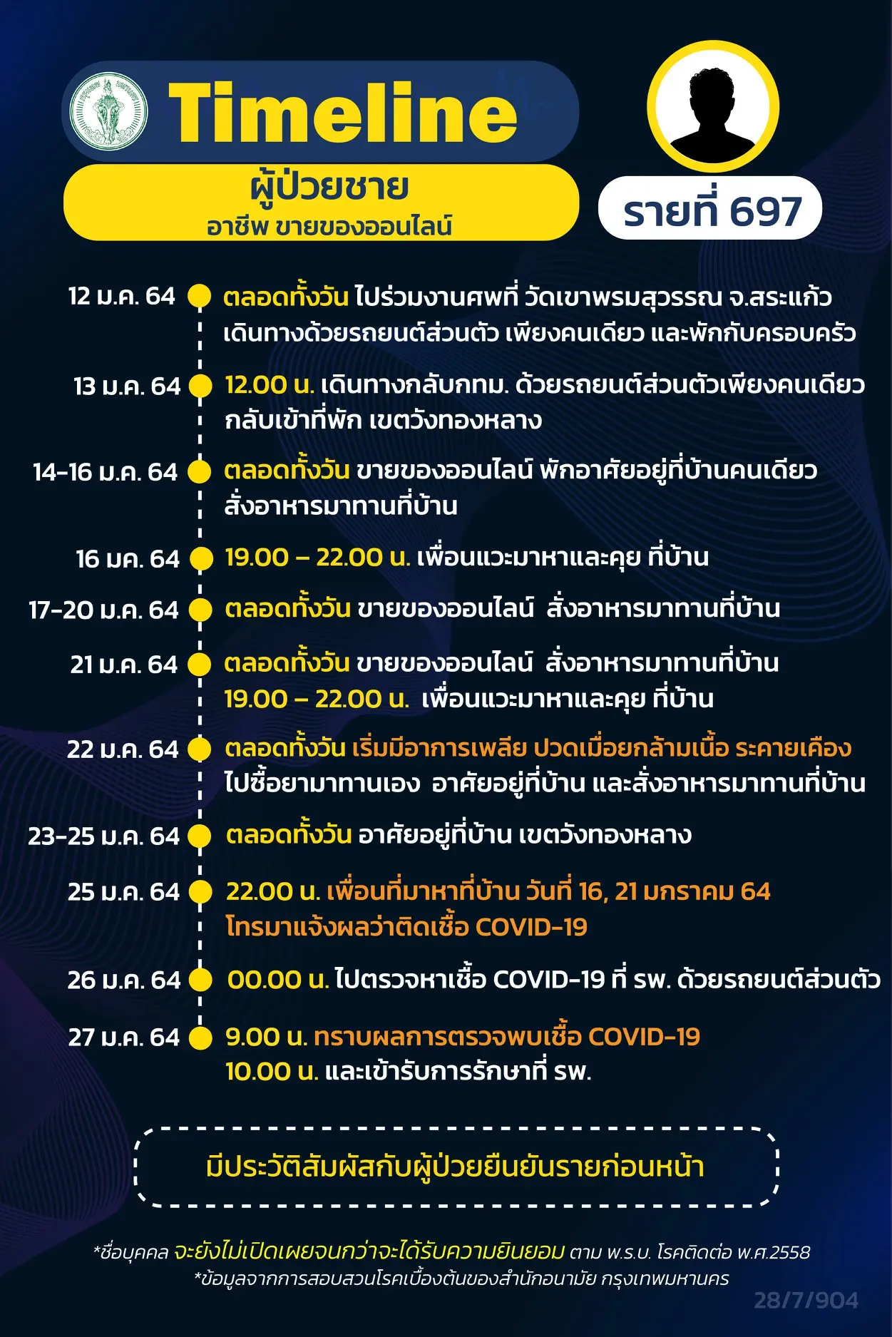 โดย Timeline แถลงไปแล้ว 695 ราย และ วันนี้ มี Timeline ผู้ติดเชื้อที่อยู่ใน กทม.