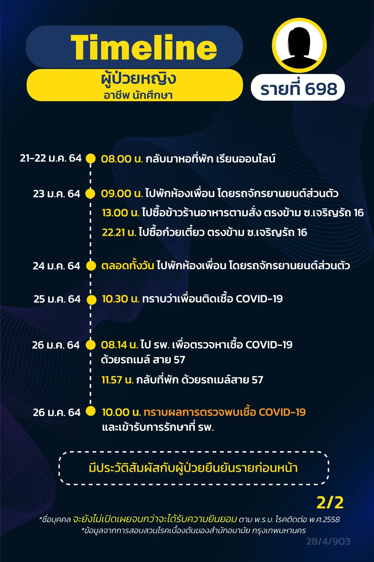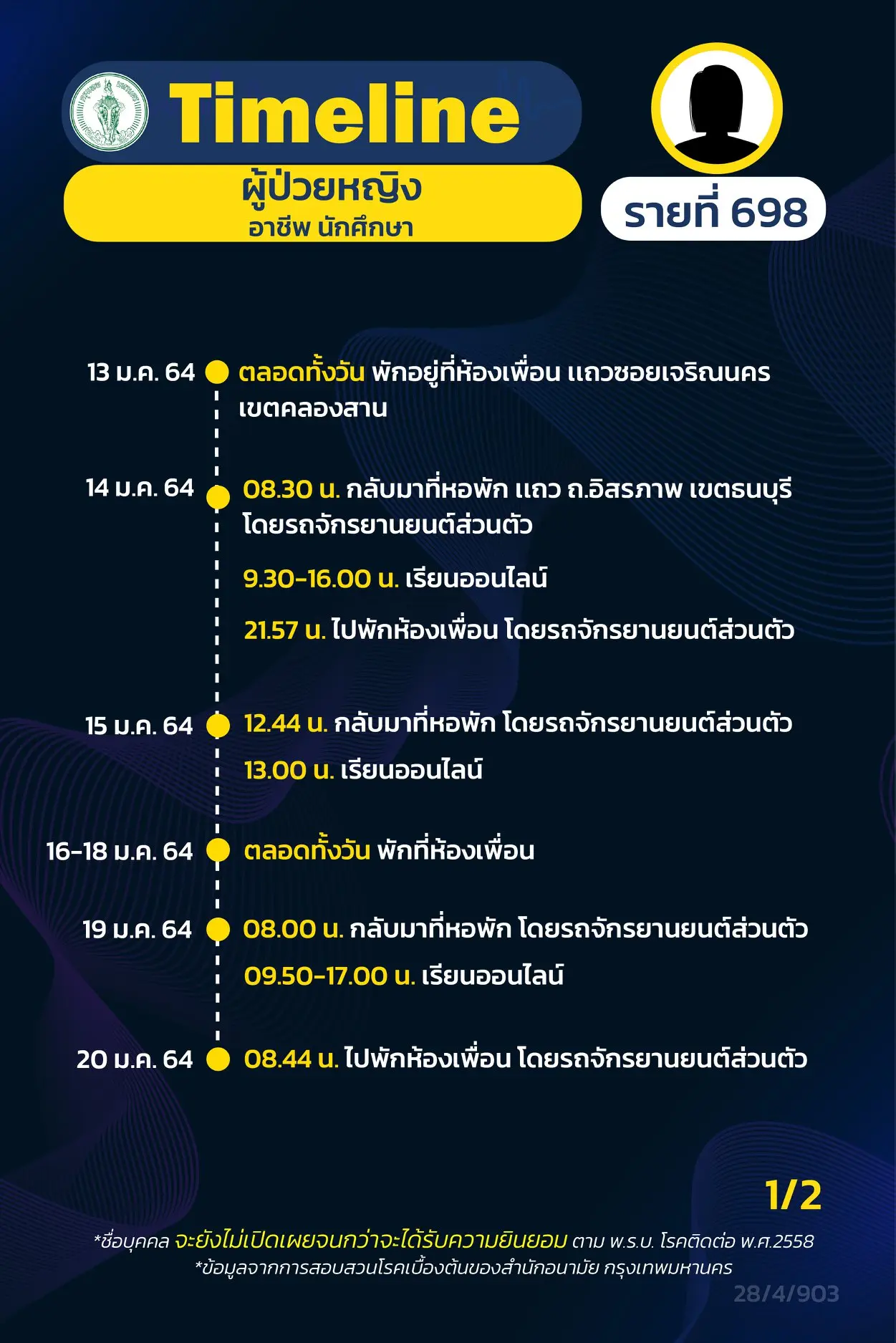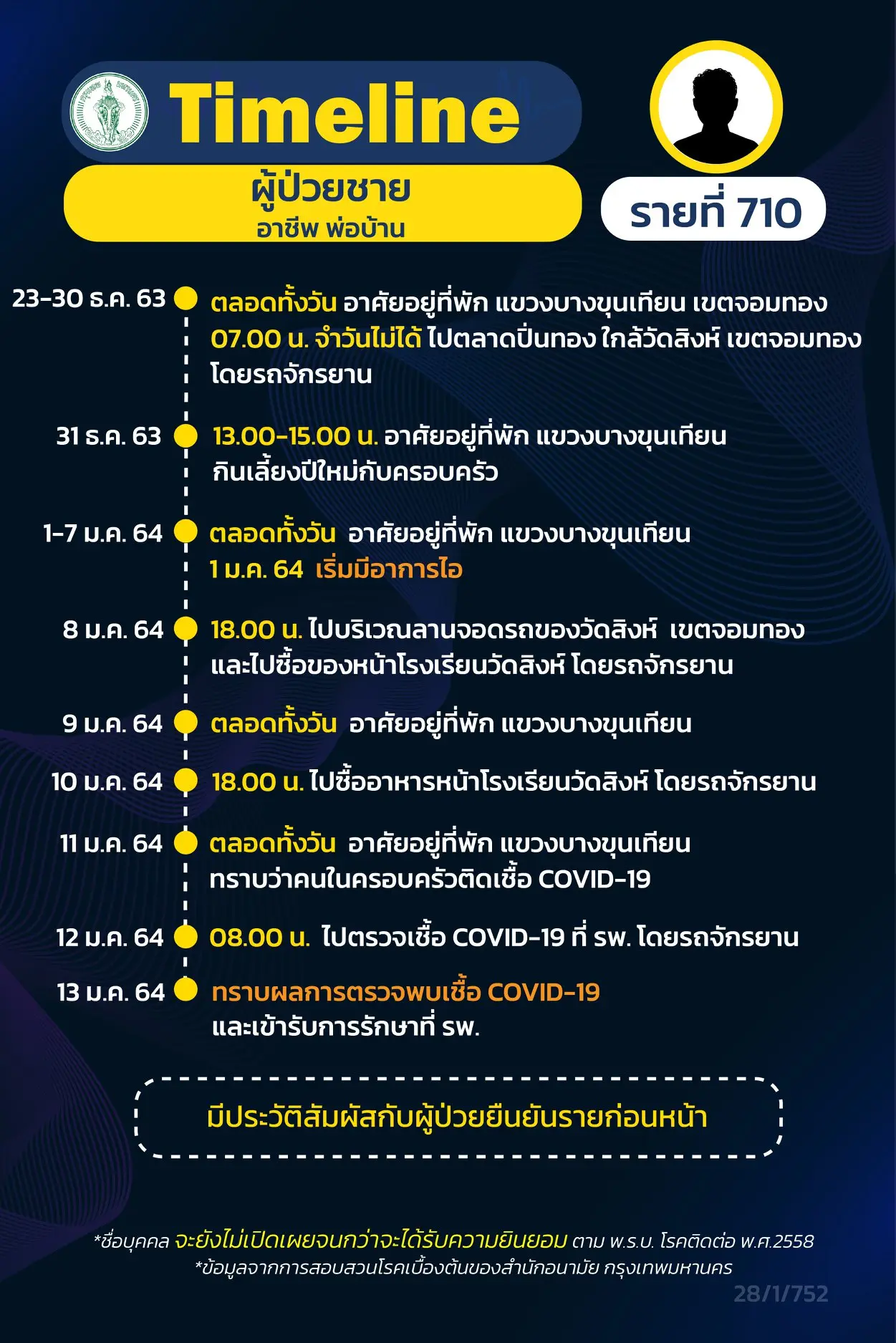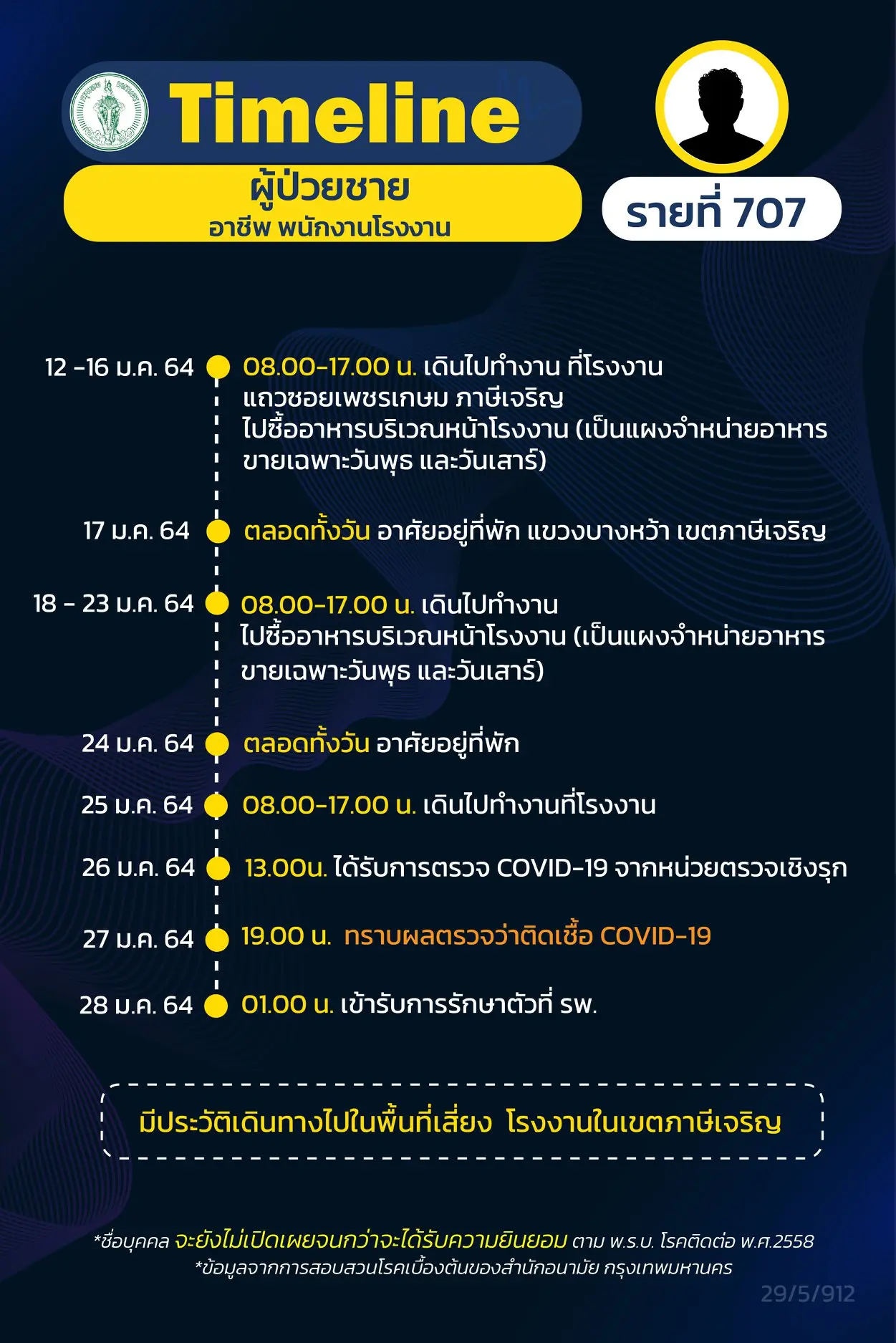 โดย Timeline แถลงไปแล้ว 695 ราย และ วันนี้ มี Timeline ผู้ติดเชื้อที่อยู่ใน กทม.