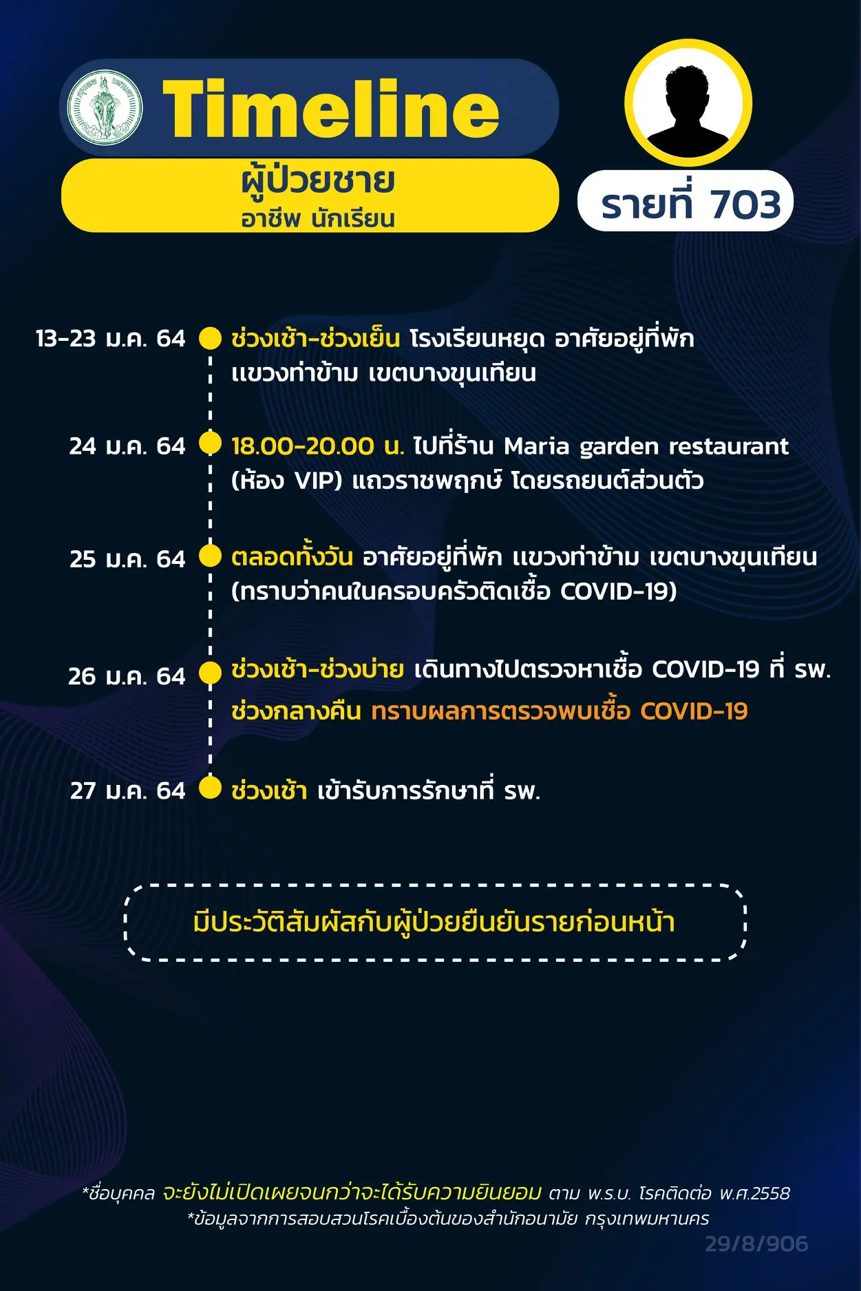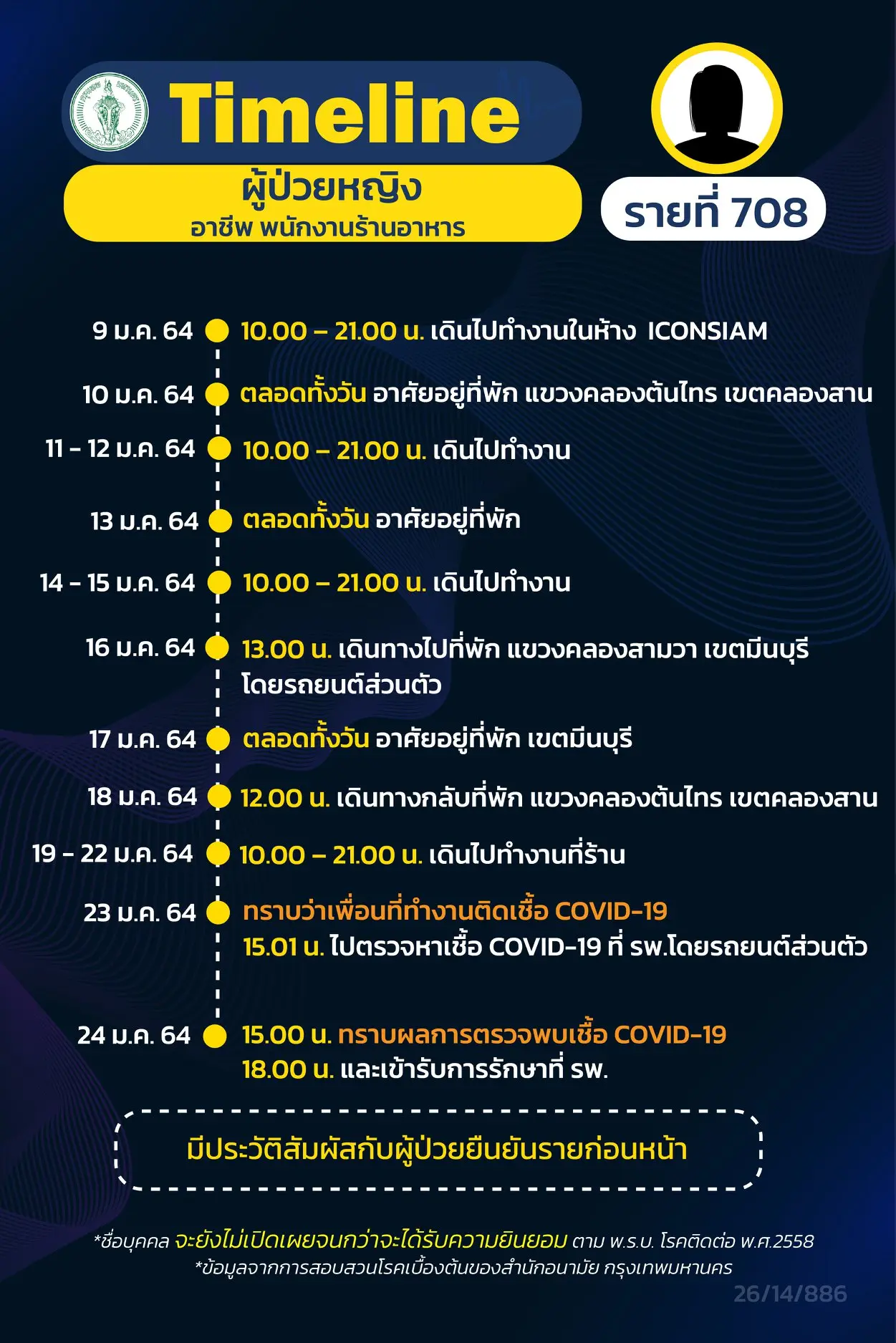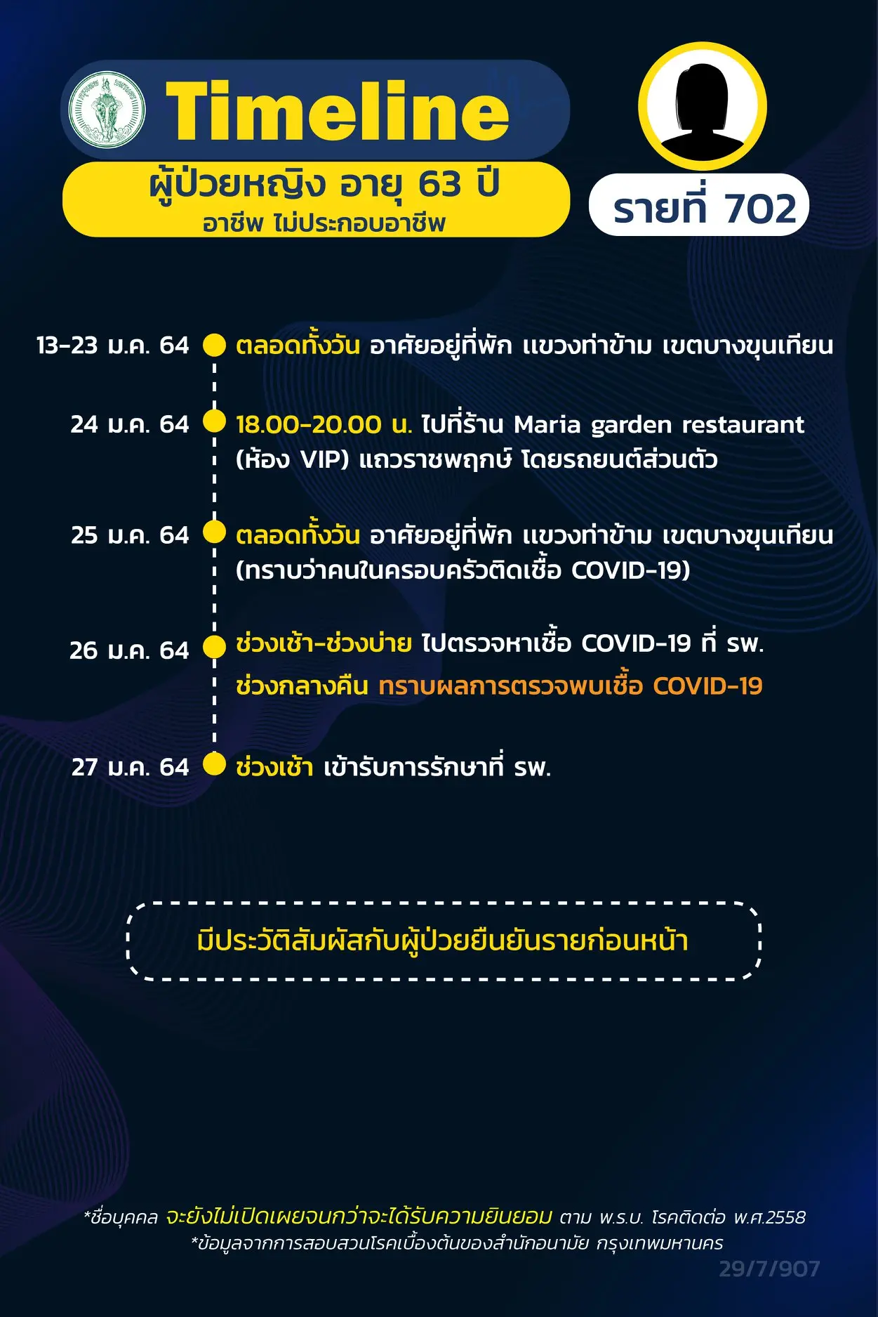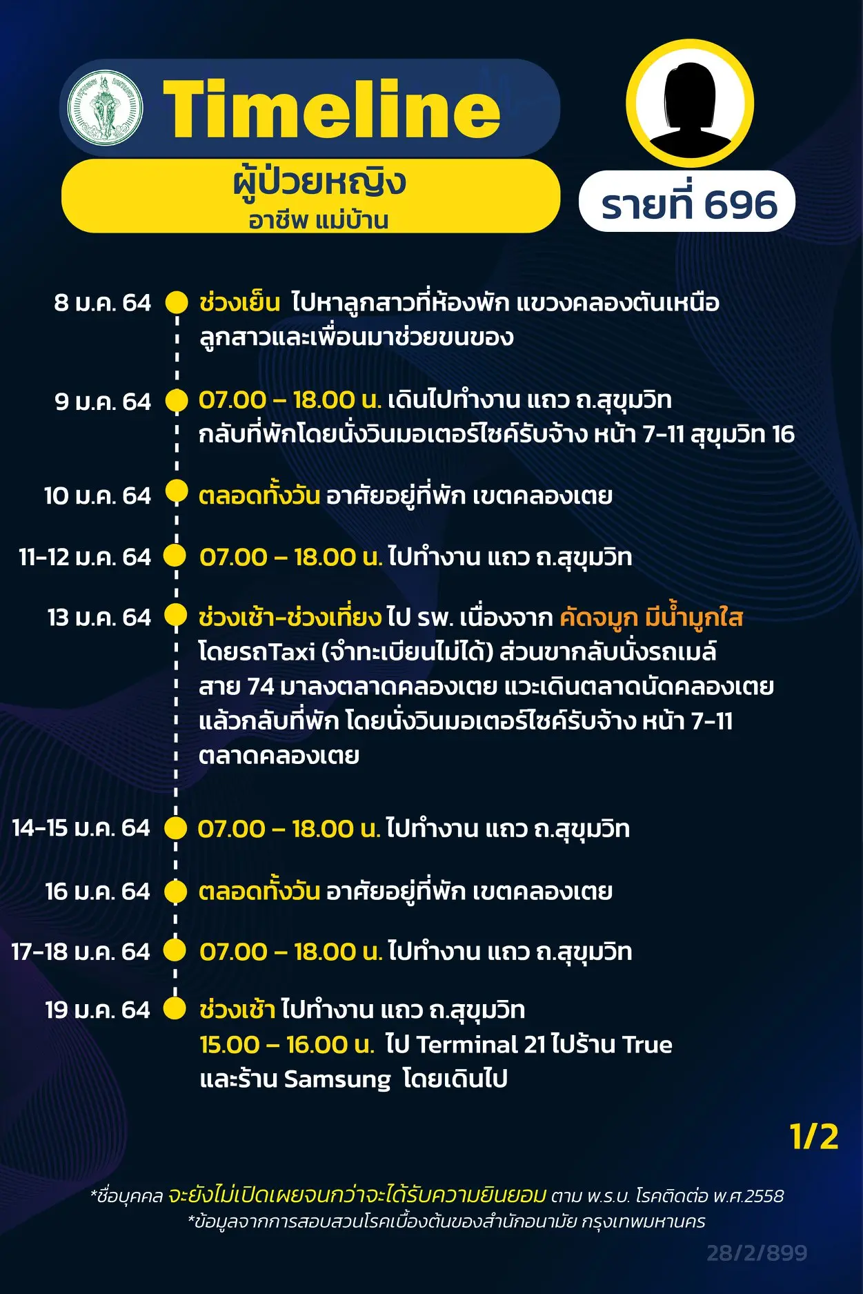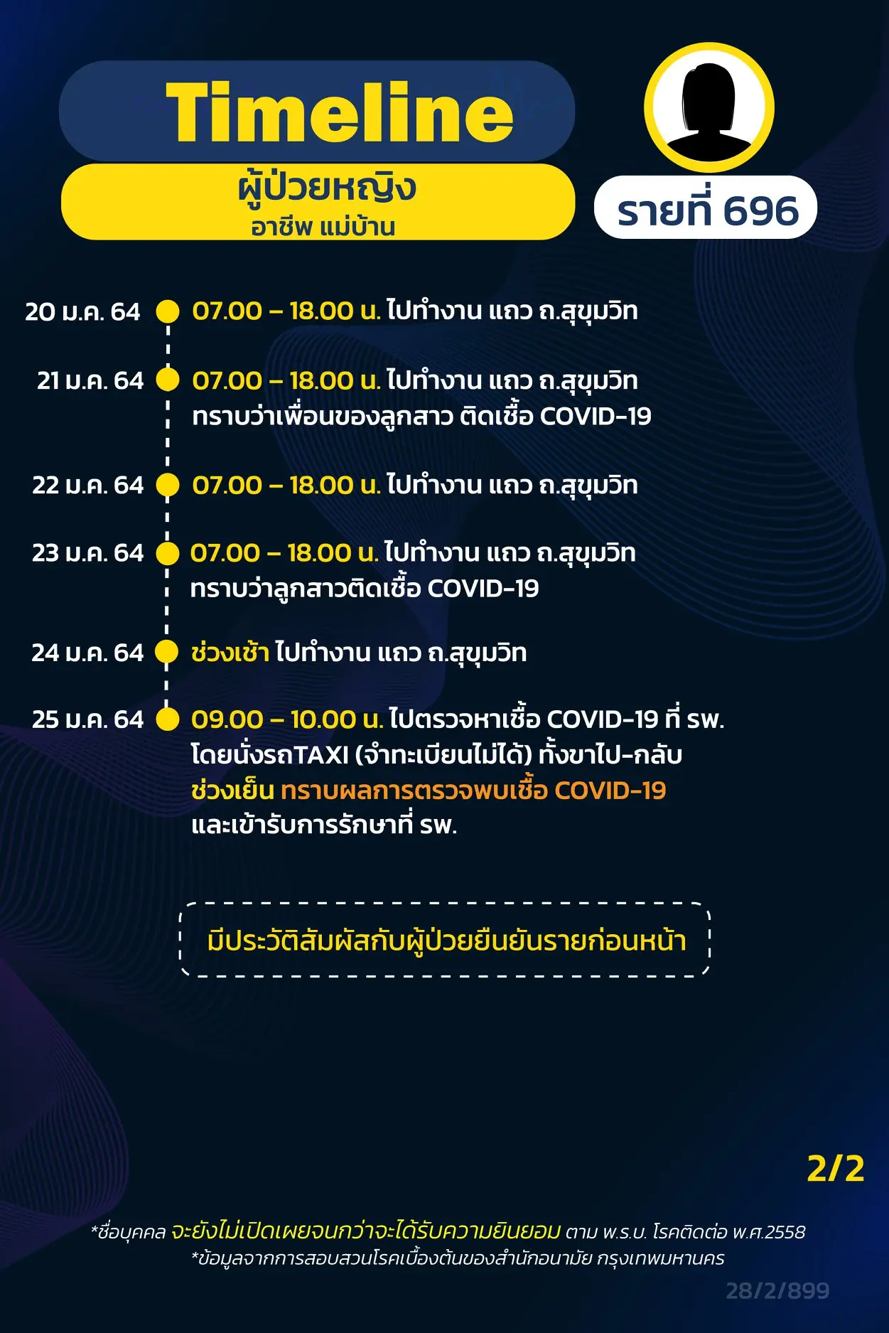 โดย Timeline แถลงไปแล้ว 695 ราย และ วันนี้ มี Timeline ผู้ติดเชื้อที่อยู่ใน กทม.