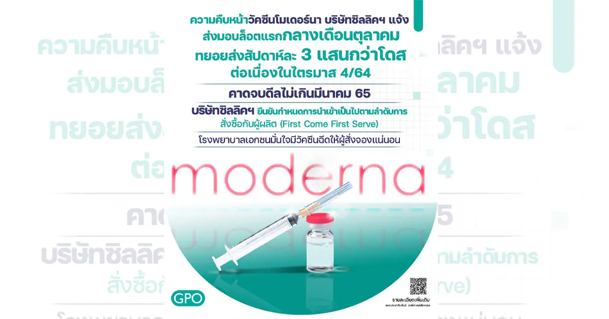ข่าวดีสำหรับคนลงทะเบียนจอง คืบหน้า! “วัคซีนโมเดอร์นา” ส่งมอบล็อตแรกกลาง ต.ค 64 สัปดาห์ละ 3 แสนกว่าโดส คาดจบดีลไม่เกินมีนาคม 65