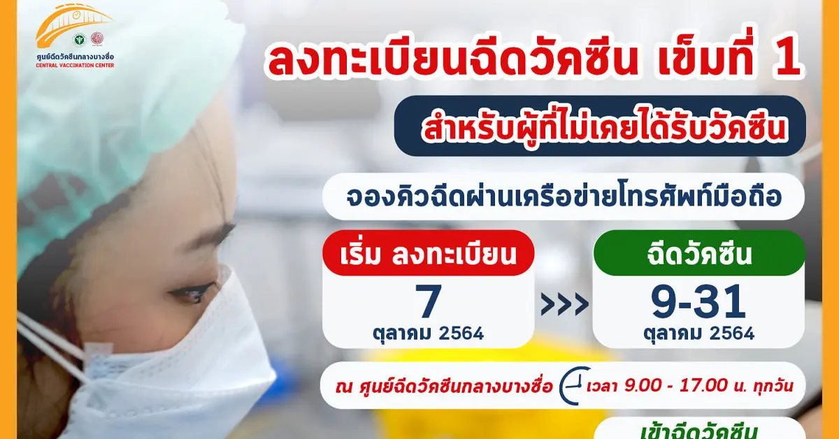 ยังไม่เต็ม! ศูนย์ฉีดวัคซีนบางซื่อ โพสต์ย้ำ คิวฉีดวัคซีนโควิดเข็ม1 ยังว่างอยู่ ลงทะเบียนผ่านค่ายมือถือทั้ง 4 ค่าย ฉีดวัคซีนถึงวันที่ 31 ตุลาคม 2564