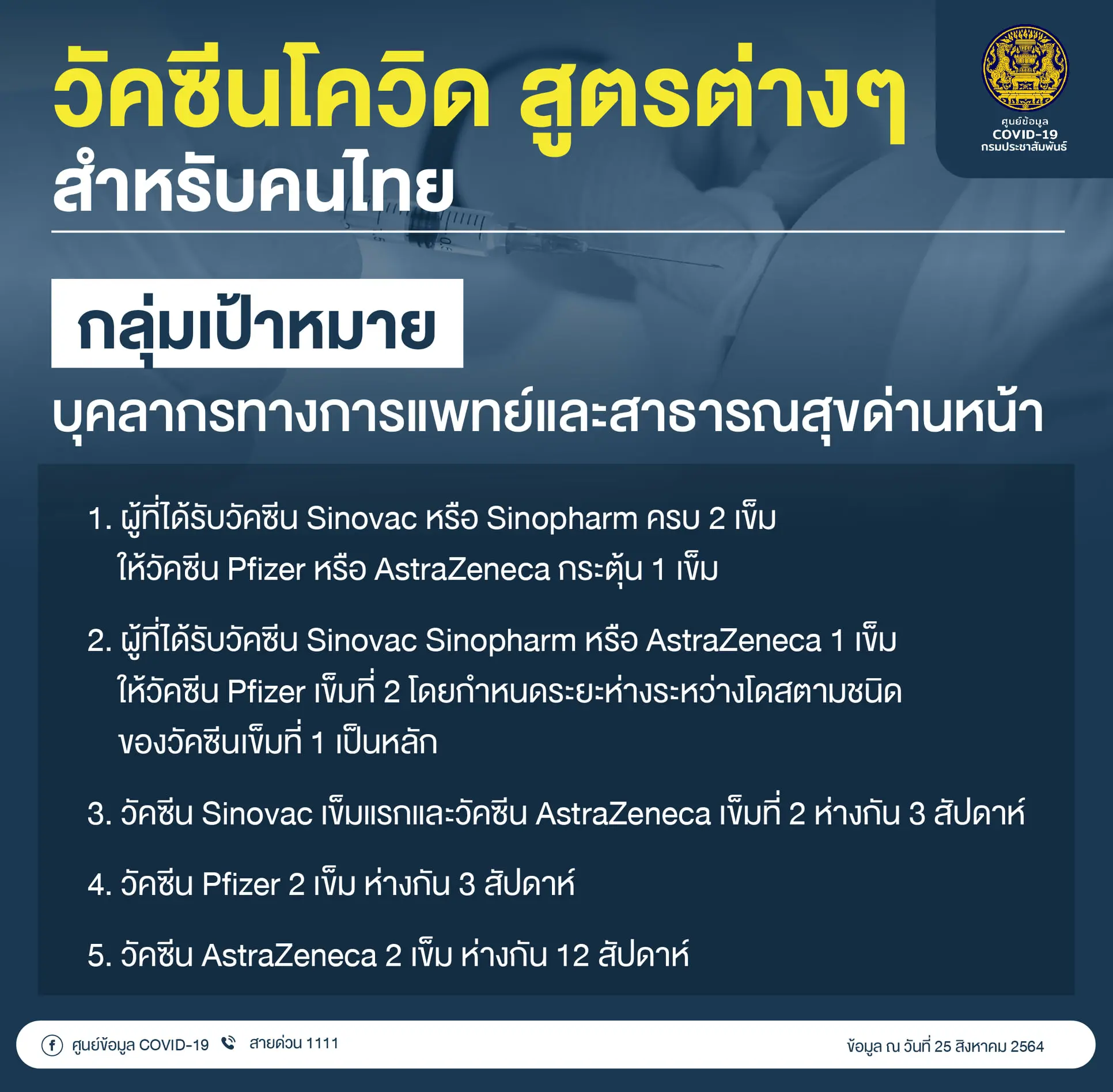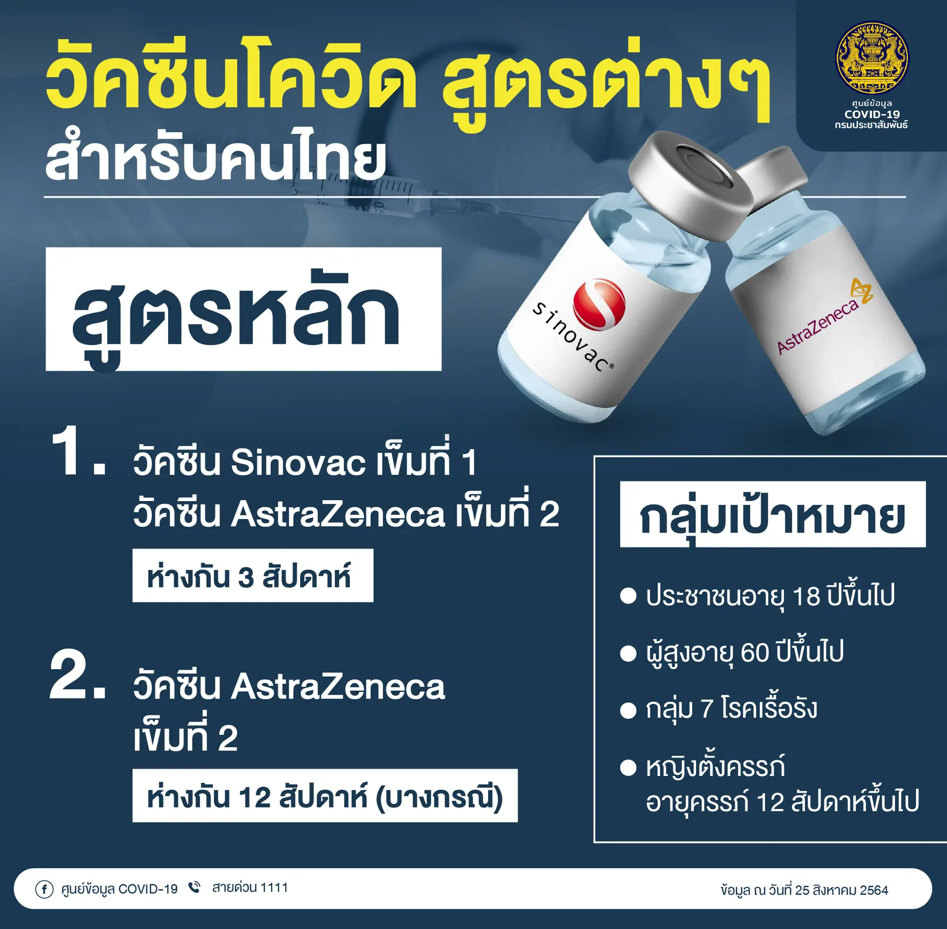 เช็กที่นี่! รวบรวม “วัคซีนโควิด” สูตรต่างๆ สำหรับคนไทย กลุ่มนี้ ได้ฉีดวัคซีนสูตรไหน?