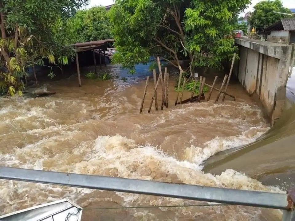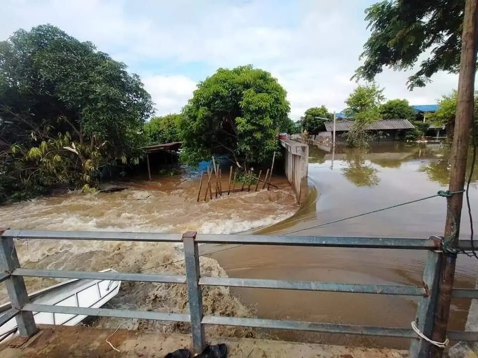 ขณะที่ ผู้ใช้เฟซบุ้ค Radamanee Pd โพสต์ภาพพร้อมข้อความ …“ด่วน…..พนังกั้นน้ำริมน้ำเจ้าพระยาหน้าวัดปราสาทอินทร์บุรี จ.สิงห์บุรี..แตกแค่เสี้ยววินาที ถึงชั้น2สงสารชาวบ้านเก็บของไม่ทัน เพราะส่วนใหญ่ออกไปขายของกันหมด ยิ่งกั้นเหมือนจะยิ่งเอาไม่อยู่