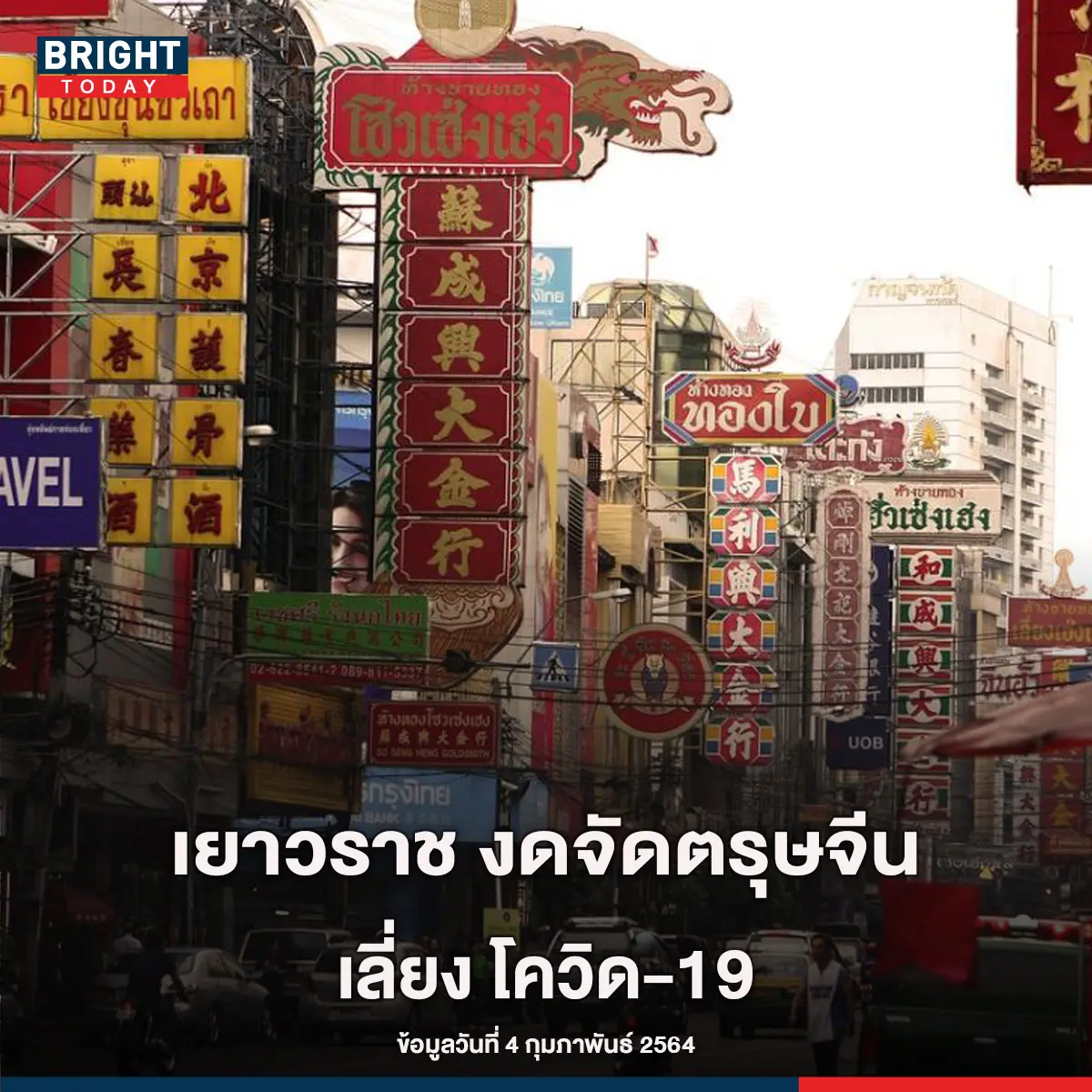 4 ก.พ. 64 พล.ต.อ.อัศวิน ขวัญเมือง ผู้ว่าราชการกรุงเทพมหานคร (กทม.) เปิดเผยว่า กรุงเทพมหานคร งดจัดงานเทศกาลตรุษจีนเยาวราช ในปี 2564 หลังสถานการณ์แพร่ระบาดของโรคติดเชื้อไวรัสโคโรนา 2019 (โควิด-19) ที่เกิดขึ้นยังไม่มีแนวโน้มลดลง