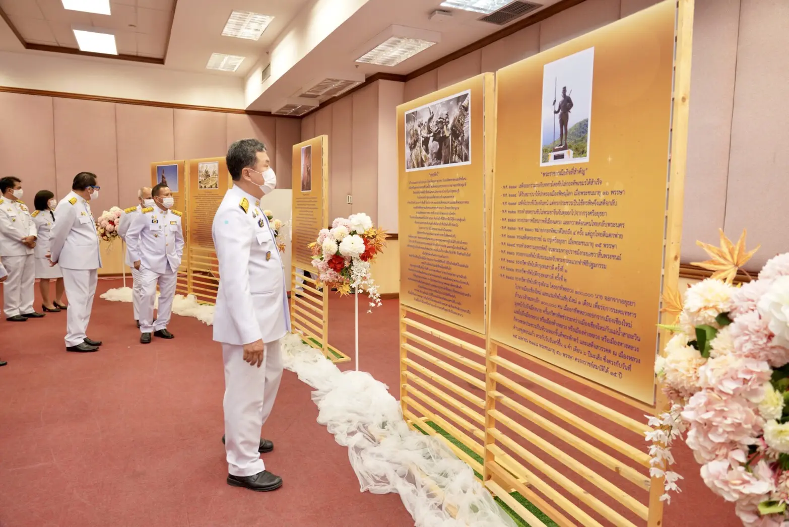 โดยหลังจากเสร็จพิธีฯ อธิบดีกรมการพัฒนาชุมชน ได้นำคณะผู้บริหาร ข้าราชการ เยี่ยมชมนิทรรศการ พระราชประวัติ พระราชกรณียกิจที่สำคัญของสมเด็จพระนเรศวรมหาราช ซึ่งวันที่ 18 มกราคม พ.ศ. 2135 เป็นวันที่สมเด็จพระนเรศวรมหาราชได้กระทำยุทธหัตถีและมีชัยต่อสมเด็จพระมหาอุปราชา ด้วยประวัติศาสตร์อันยิ่งใหญ่ คณะรัฐมนตรีจึงมีมติเมื่อวันที่ 29 พฤศจิกายน พ.ศ. 2548 กำหนดให้วันที่ 18 มกราคมของทุกปีเป็นรัฐพิธีวันยุทธหัตถี สมเด็จพระนเรศวนมหาราช เพื่อน้อมรำลึกและสำนึกในพระมหากรุณาธิคุณที่พระองค์ทรงมีต่อปวงชนชาวไทยนานัปการ