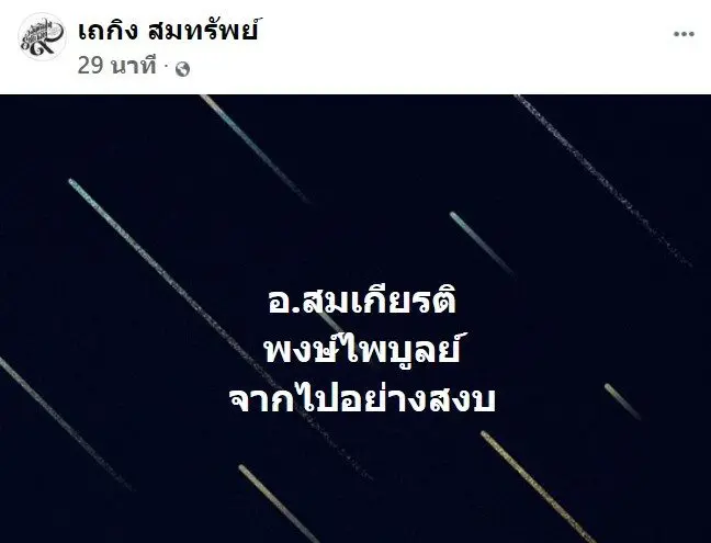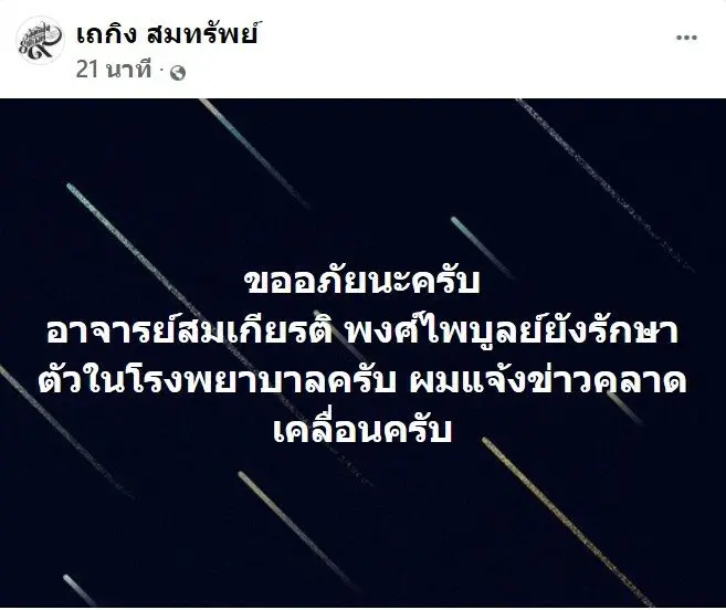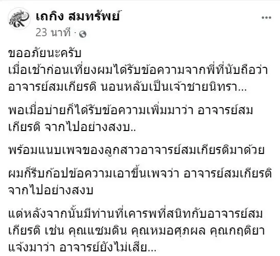 เข้าใจคลาดเคลื่อน เถกิง สมทรัพย์ โพสต์ขอโทษ กรณีแจ้งข่าวการเสียชีวิตของ นายสมเกียรติ พงษ์ไพบูลย์