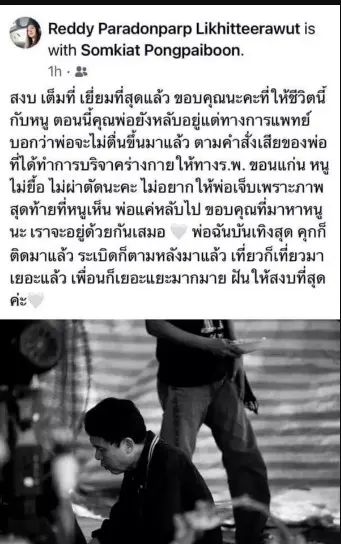 ทั้งนี้ความเข้าใจผิดดังกล่าว สืบเนื่องจากที่ ลูกสาวนาย สมเกียรติ พงษ์ไพบูลย์ ได้โพสต์ถึงคุณพ่อ ผ่านบัญชีเฟซบุ๊ก Reddy Paradonparp Likhitteerawut มีการแท็กเฟซบุ๊กถึงพ่อว่า “สงบ เต็มที่ เยี่ยมที่สุดแล้ว ขอบคุณนะคะที่ใช้ชีวิตนี้กับหนู ตอนนี้คุณพ่อยังหลับอยู่แต่ทางการแพทย์บอกว่าพ่อจะไม่ตื่นขึ้นมาแล้ว ตามคำสั่งเสียของพ่อที่ได้ทำการบริจาคร่างกายให้ รพ.ขอนแก่น หนูไม่ยื้อ ไม่ผ่าตัดนะคะ ไม่อยากให้พ่อเจ็บเพราะภาพสุดท้ายที่หนูเห็น พ่อแค่หลับไป ขอบคุณที่มาหาหนูนะ เราจะอยู่ด้วยกันเสมอพ่อฉันบันเทิงสุด คุกก็ติดมาแล้ว ระเบิดก็ตามหลังมาแล้ว เที่ยวก็เที่ยวมาเยอะแล้ว เพื่อนก็เยอะแยะมากมาย ฝันให้สงบที่สุดค่ะ”