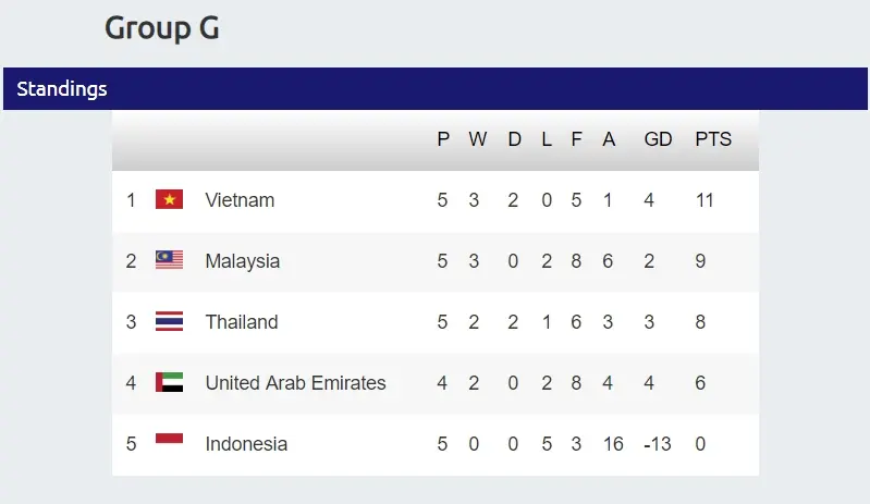 สำหรับ ทีมชาติไทย ปัจจุบันรั้งอันดับ 3 ในกลุ่ม จี มี 8 คะแนน