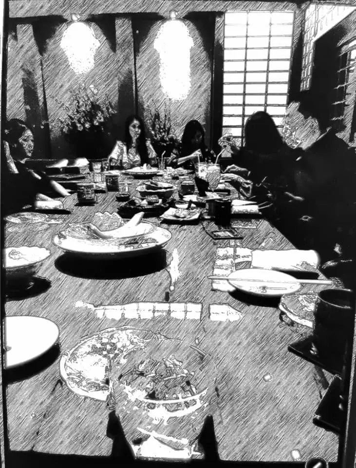 2.ณ ห้อง vvip แห่งหนึ่ง ทานอาหารญี่ปุ่น 1 ชายหนุ่มแดนปลาดิบใส่แมส ควง 5 สาว ไม่ใส่แมส ตั้ง 5 คน จะไหวเหรอพี่ ภาพ