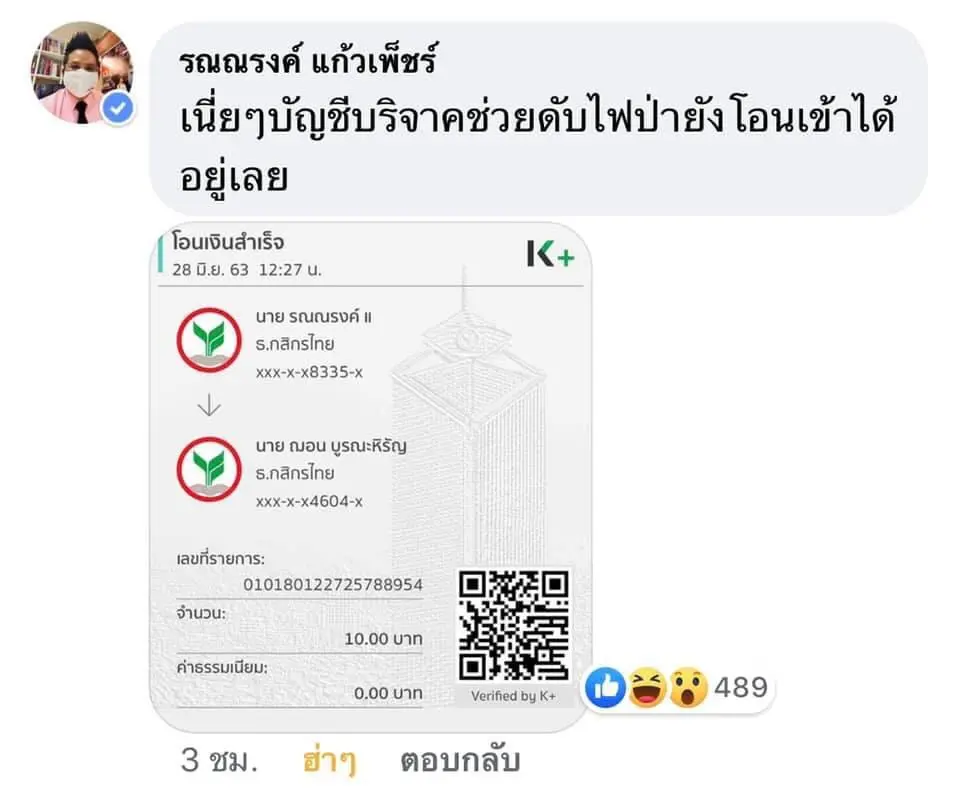 ล่าสุด ทนายรณรงค์ แก้วเพชร ทนายความชื่อดัง เจ้าของเพจ ทนายคู่ใจ ได้โพสต์ข้อความลงบนเฟซบุ้ค แสดงหลักฐานการโอนเงินเข้าบัญชีบริจาคช่วยไฟป่าของ ฌอน บูรณะหิรัญ ว่า ยังสามารถโอนเงินได้อยู่ ซึ่งได้ทดลองโอนเงินไป 10 บาท แสดงว่าบัญชีดังกล่าวยังไม่ถูกปิด