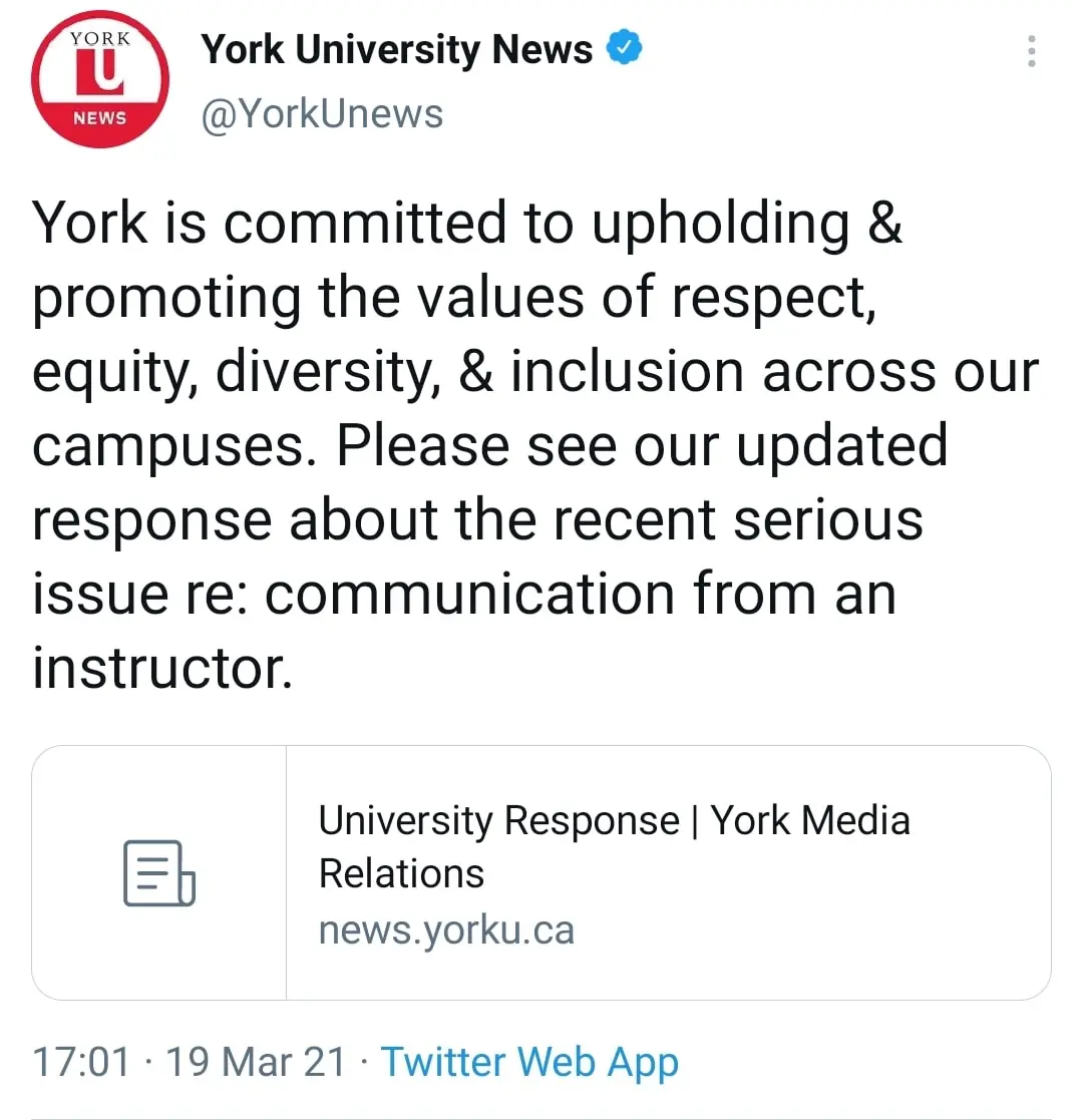 จนมหาวิทยาลัยต้องเอาเบอร์ติดต่อออกจนกระแสมันแรงทนไม่ไหว ทางมหาวิทยาลัยยอร์คเลยได้เริ่มทำการสอบสวน และล่าสุดไล่ออกแล้วค่ะ พร้อมทั้งออกประกาศว่าทางมหาวิทยาลัยใส่ใจทั้งเรื่องความหลากหลาย ความเคารพ ความเท่าเทียมกัน ในทุกๆแคมปัสของเรา และตอนนี้อาจารย์ที่เจ้าปัญหาก็ได้ให้ลาไม่มีกำหนดแล้ว และให้คนอื่นมาแทน หลังจากนั้นจึงยกเลิกสัญญาจ้างไม่พอในเว็ป Rate my professor พบว่าพฤติกรรมร้ายเยอะมาก