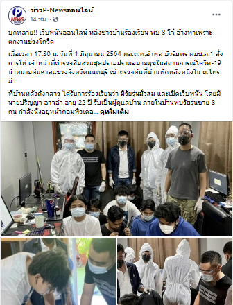 บุกทลาย!! เว็บพนันออนไลน์ หลังชาวบ้านร้องเรียน พบ 8 โจ๋ อ้างทำเพราะ ตกงานช่วงโควิด เมื่อเวลา 17.30 น. วันที่ 1 มิถุนายน 2564 พล.ต.ท.อำพล บัวรับพร ผบช.ภ.1 สั่งการให้ เจ้าหน้าที่ตำรวจสืบสวนชุดปราบปรามอบายมุขในสถานการณ์โควิด-19 นำหมายค้นศาลแขวงจังหวัดนนทบุรี เข้าตรวจค้นที่บ้านพักหลังหนึ่งใน ต.ไทรม้าที่บ้านหลังดังกล่าว ได้รับการร้องเรียนว่า มีวัยรุ่นมั่วสุม และเปิดเว็บพนัน โดยมี นายปริญญา อาจอ่ำ อายุ 22 ปี รับเป็นผู้ดูแลบ้าน ภายในบ้านพบวัยรุ่นชาย 8 คน กำลังนั่งอยู่หน้าคอมพิวเตอร์ โปรโมตเว็บพนันออนไลน์