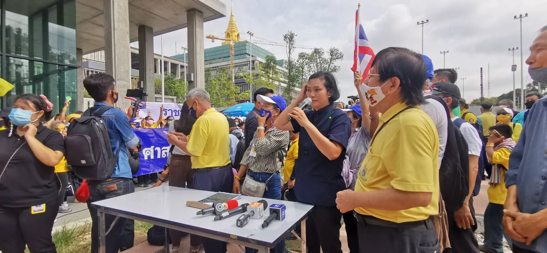 บรรยากาศก่อนหน้าการยื่นหนังสือ อุ๊ หฤทัยและนพ.วรงค์ได้ร่วมกันปราศรัยถึงเหตุผลที่ต้องคัดค้านการแก้ไขรัฐธรรมนูญ โดยเฉพาะในหมวดที่เกี่ยวกับสถาบัน