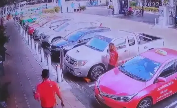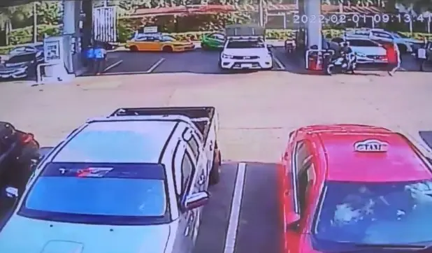 ภาพวงจรปิดภายในปั๊ม พบรถกระบะสีบรอนส์ ขับเข้ามาจอดที่หัวจ่ายต่อ นายเทพพิทักษ์ ลงมาจากรถลักษณะเซไปมา ก่อนจะเดินตรงไปที่ตู้เอทีเอ็มที่ตั้งอยู่ทางออกของปั๊ม และได้เดินชนเสากันทางเท้าหน้าร้านสะดวกซื้อ จนมีบางอย่างตกที่พื้น นายเทพพิทักษ์ ได้ก้มลงเก็บ ก่อนจะเดินไปที่ตู้เอทีเอ็ม ใช้เวลาที่ตู้ประมาณ 15 นาที ก่อนจะเห็นพนักงานปั๊มเดินไป พานายเทพพิทักษ์ เดินกลับมาที่รถกระบะ ก่อนขึ้นรถขับออกไปทันที