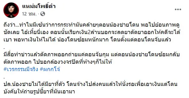 มีสื่อทำข่าวแล้วตัดภาพออกถ่ายแค่ตอนจับกุม แต่ตอนน้องชายโดนซ้อม กลับตัดภาพออก ไปขอกล้องวงจรปิดที่ห้างๆก็ไม่ให้ #เวรกรรมมีจริง #ผกกโจ้