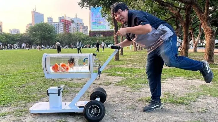 หนุ่มหัวใส ทำโหลปลาทองติดล้อ สำหรับ พาปลาไปเดินเล่น! เหล่าคนเลี้ยงปลาจะได้ไม่ต้องไปอจฉาคนเลี้ยงหมาแมวอีกต่อไป