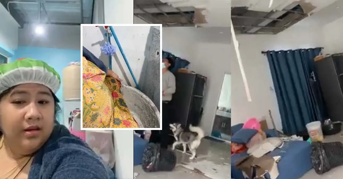 ซึ่งการที่น้ำร่วมลงมาทำให้ น้ำไหลลงมาใส่ฝ้าด้านล่างไม่รู้จะพังลงมาเมื่อไหร่ เป็นกังวลว่าจะหล่นมาทับลูกหรือคนในครอบครัว ทั้งยังพบปัญหาอื่นๆอีกหลายจุด ล่าสุด ได้มีการติดต่อมาว่าจะช่วยเหลือค่าที่พัก 500 บาท ให้ ย้ายไปอยู่ข้างนอกแล้วให้เราเคลียร์ของออกเพื่อจะให้ช่างดำเนินการซ่อมเป็นอาทิตย์ แต่ครอบครัวตนก็มีกันหลายคนและสุนัขอีกจำนวนหนึ่ง จึงให้ผู้รับผิดชอบหาที่พักให้แต่ก็ยังไม่มีการติดต่อกลับมา