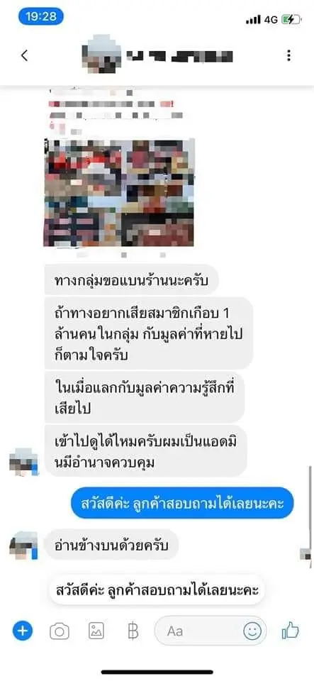 “ทางกลุ่มขอแบนร้านนะครับ ถ้าทางร้านอยากเสียสมาชิกเกือบ 1 ล้านคนในกลุ่ม กับมูลค่าที่หายไป ก็ตามใจครับ ในเมื่อแลกกับมูลค่าความรู้สึกที่เสียไป เข้าไปดูได้ไหมครับ ผมเป็นแอดมินมีอำนาจควบคุม”
