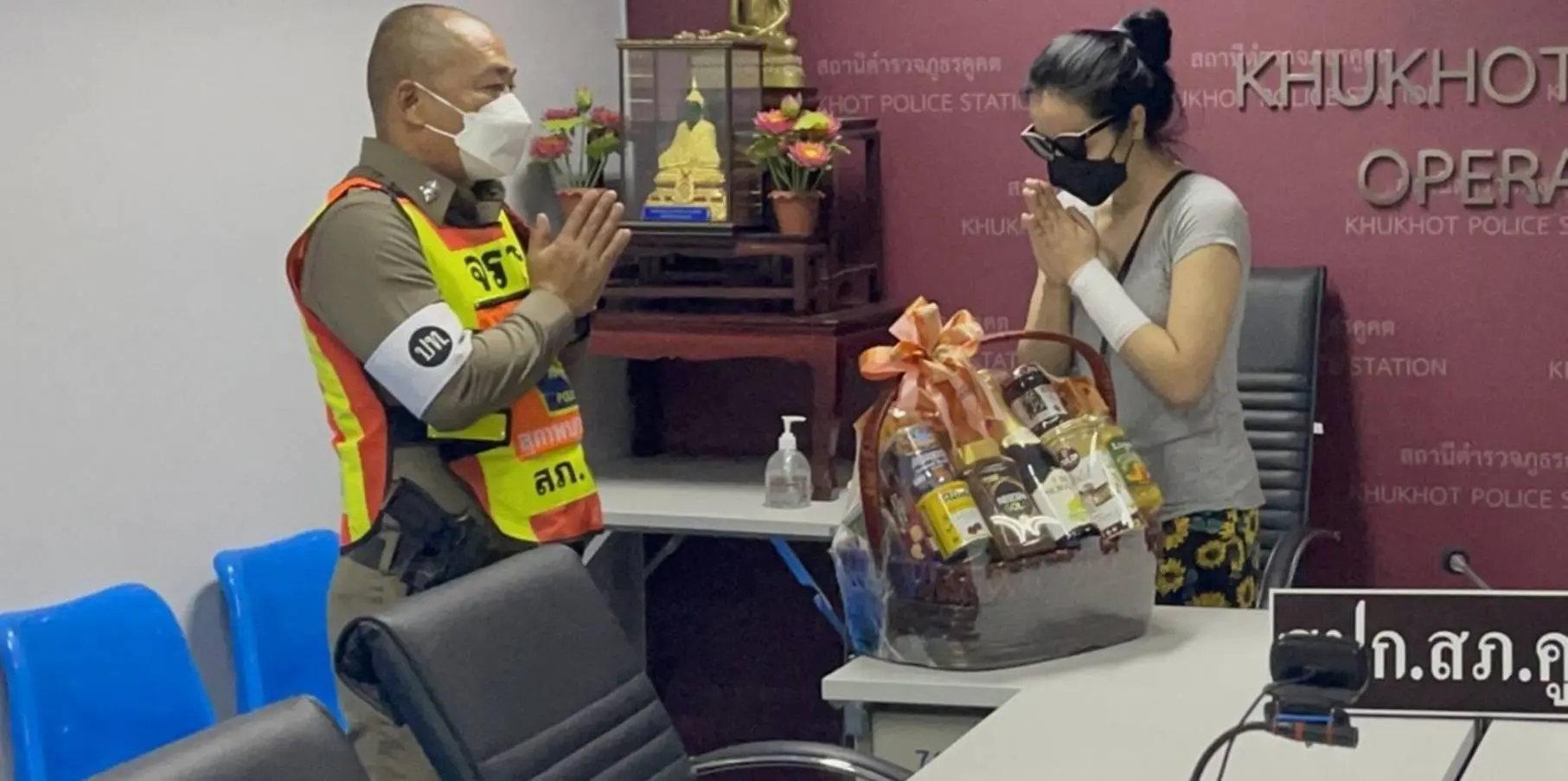 โดยล่าสุด สาวคนดังกล่าวได้ยกกระเช้า พร้อม กราบขอโทษเจ้าหน้าที่ตำรวจที่ถูกตนเองทำร้าย และขอโทษสังคมด้วยเช่นกัน รับปากว่าจะไม่ทำแบบนี้แล้ว โดยได้ ยอมรับผิดทุกข้อกล่าวหา ด้าน ด.ต.กิตติธัช พันสำโรง กล่าวว่าตนเองไม่ถือโกรธอะไรน้อง เพราะรู้ว่าน้องเขาเมา และเราเป็นเจ้าหน้าที่ตำรวจ ก็ต้องไประงับเหตุอยู่แล้ว