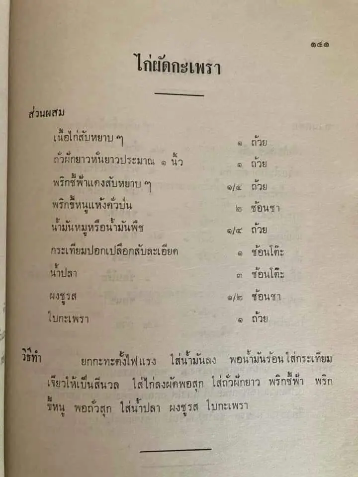 แฟนกะเพราว่าไง เปิดสูตรผัดกะเพรา สูตรดั้งเดิม เมื่อ 51 ปีที่แล้ว โดย บุนนาค ช่อวิเชียร พบใส่ถั่วฝักยาวมันมาแต่ไหนแต่ไร แล้วอย่างนี้จะอะไรมาชี้วัดว่า ผัดกะเพราในแท้ไหนเทียม