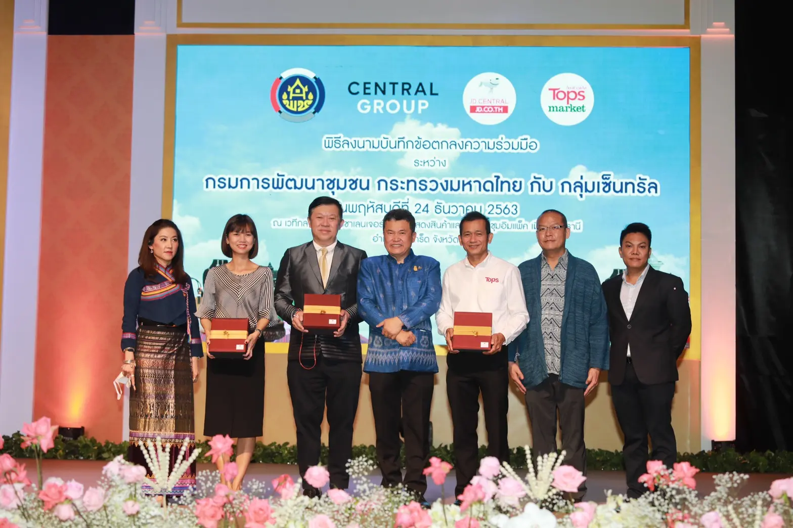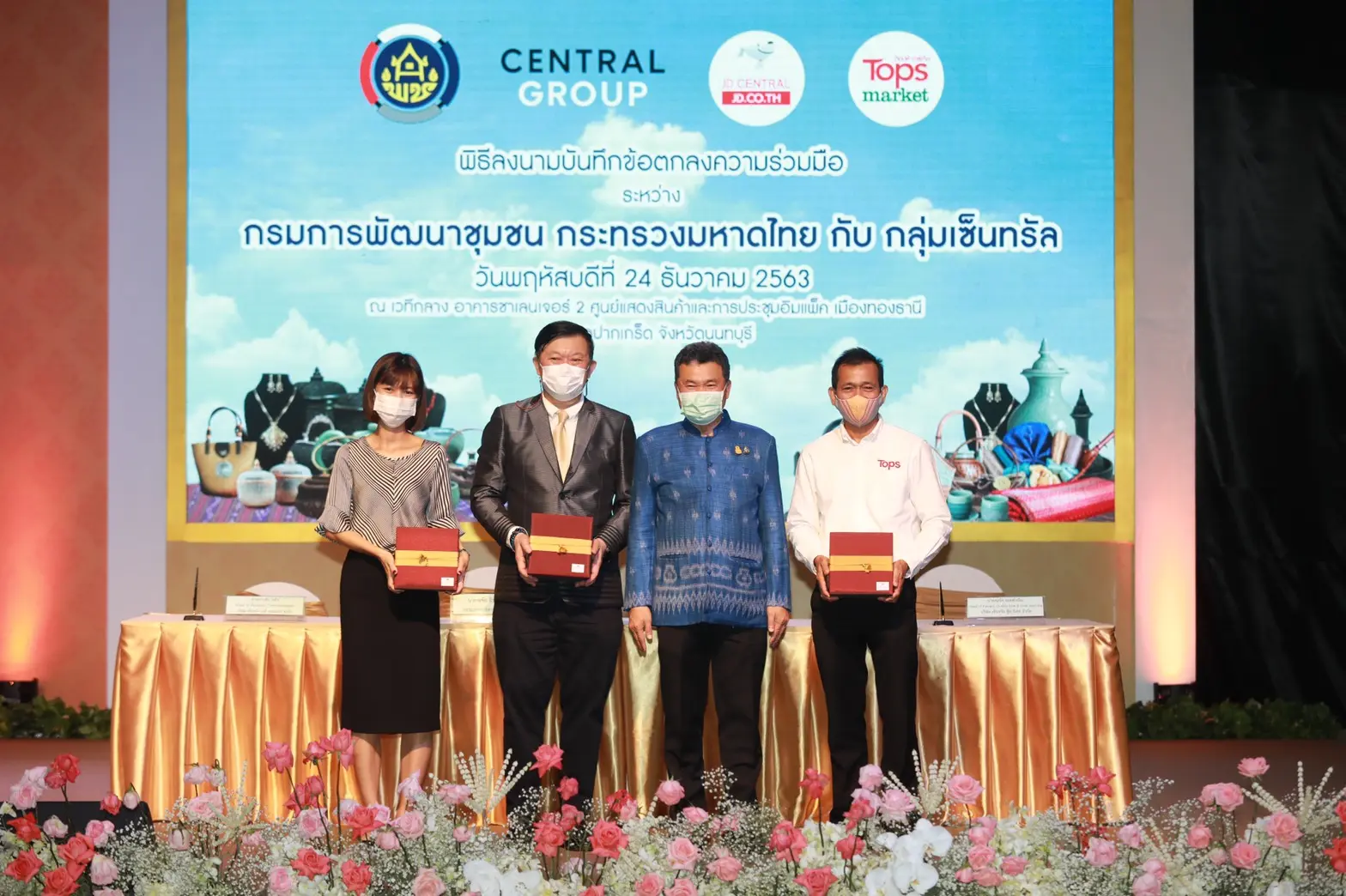 วันพฤหัสบดีที่ 24 ธันวาคม 2563 เวลา 14.00 น. นายสุทธิพงษ์ จุลเจริญ อธิบดีกรมการพัฒนาชุมชน กระทรวงมหาดไทย เป็นประธานในพิธีเปิดงานและลงนามบันทึกข้อตกลงความร่วมมือ (MOU) ระหว่างกรมการพัฒนาชุมชน กับ กลุ่มเซ็นทรัล บริษัท เซ็นทรัล เจดี คอมเมิร์ซ จำกัด บริษัท เซ็นทรัล ฟู้ด รีเทล จำกัด โดยมี นายพิชัย จิราธิวัฒน์ กรรมการบริหารกลุ่มเซ็นทรัล นางสาวเซิ่น ไฉอิง Head of Business Transformation บริษัท เซ็นทรัล เจดี คอมเมิร์ซ จำกัด และ นายสมนึก ยอดดำเนิน Head of Farmers, Quality Line & local sourcing บริษัท เซ็นทรัล ฟู้ด รีเทล จำกัด ณ เวทีกลาง อาคารชาเลนเจอร์ 2 ศูนย์แสดงสินค้าและการประชุมอิมแพ็ค เมืองทองธานี อำเภอปากเกร็ด จังหวัดนนทบุรี