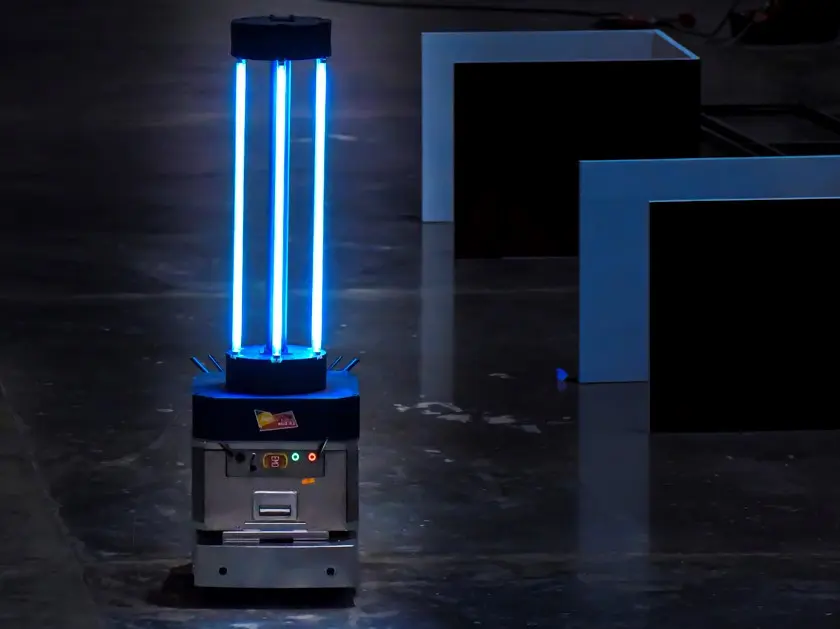 และที่สำคัญสามารถใช้ได้หลายครั้ง เนื่องจากสามารถซักและนำกลับมาใช้ใหม่ได้และ หุ่นยนต์ RAIBO-X ฆ่าเชื้อโรค ด้วยแสง UV ครั้งแรกของคนไทย โดยฝีมืออาจารย์และนักศึกษาหลักสูตรวิศวกรรมหุ่นยนต์และปัญญาประดิษฐ์ คณะวิศวกรรมศาสตร์ สจล. โดยมีประสิทธิภาพที่จะสามารถฆ่าเชื้อโรค ด้วยแสง UV-C ในรัศมี 1 – 1.5 เมตร ซึ่งจะมีประสิทธิภาพสูงในการกำจัดสิ่งมีชีวิตหรือเชื้อโรคขนาดเล็ก อาทิ ไวรัส แบคทีเรีย เชื้อรา และเชื้อโรคชนิดต่าง ๆ รวมถึงเชื้อไวรัสโควิด-19 ได้ ซึ่งหุ่นยนต์ RAIBO-X มีการใช้งานด้วยระบบ AI ทำให้สามารถควบคุมระยะไกลผ่านรีโมทคอนโทรล เพื่อความปลอดภัยของผู้ควบคุม เนื่องจากแสง UV มีรังสีที่อันตรายจึงต้องควบคุมจากด้านนอกพื้นที่ แต่ยังมีความสะดวกในการใช้งานด้วยระบบแบบไร้สาย จะทำให้สามารถเข้าถึงพื้นที่ได้อย่างละเอียดและควบคุมได้ง่ายและปลอดภัยทั้งนี้ ประชาชนที่สนใจร่วมบริจาคเพื่อสมทบทุนการผลิตเพื่อแจกจ่ายแก่โรงพยาบาลทั่วประเทศ สามารถบริจาคได้ที่ธนาคารกรุงไทย เลขที่บัญชี 693-031-750-0 สาขา สถาบันเทคโนโลยีพระจอมเกล้าเจ้าคุณทหารลาดกระบัง ชื่อบัญชี สจล. นวัตกรรมสู้ COVID-19” หรือติดต่อขอรับนวัตกรรมได้ที่ สำนักงานบริหารงานวิจัยและนวัตกรรม (KRIS) หรือโทร. 084-068-7731