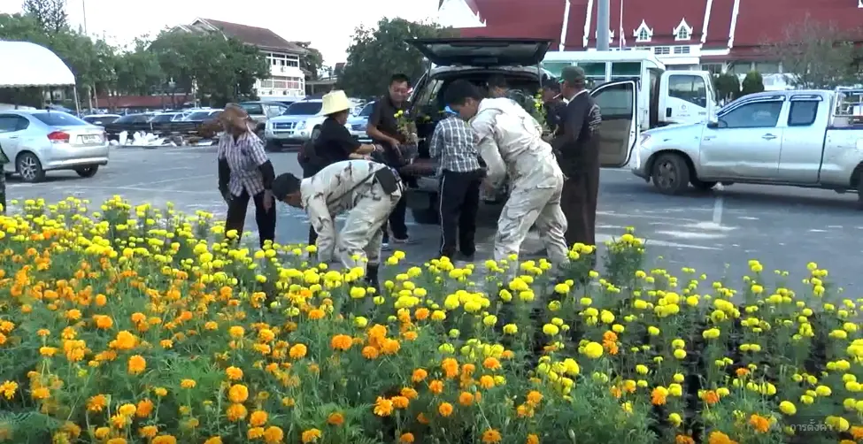จิตอาสาโคราช นำต้นดาวเรืองประดับรอบพระเมรุมาศจำลอง เพื่อปรับแต่งภูมิทัศน์ให้สวยงาม สำหรับใช้ประกอบพระราชพิธีถวายพระเพลิงพระบรมศพ ในหลวง ร.9 อย่างสมพระเกียรติที่สุด