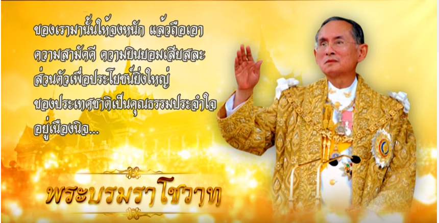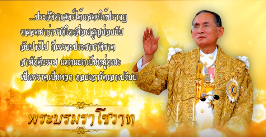 ประวัติศาสตร์ใดแสดงให้ปรากฏตลอดมาว่าชาติใดเสื่อมสูญย่อยยับอับปางใด ก็เพราะประชาชาติขาดสามัคคีธรรม แตกแยกเป็นหมู่คณะ เป็นพรรคเป็นพวก คอยเอารัดเอาเปรียบประหัสประหารซึ่งกันและกัน บางพรรคบางพวก ถึงกับเป็นไส้ศึกให้ศัตรูมาจู่โจมทำลายชาติของตนดังนี้ ข้าพเจ้าจังขอชักชวนพี่น้องชาวไทยทั้งหลายให้ระลึกถึงพระคุณบรรพบุรุษ ซึ่งได้กอบกู้รักษาบ้านเกิดเมืองนอนของเรามานั้นให้จงหนัก แล้วถือเอาความสามัคคี ความยินยอมเสียสละส่วนตัวเพื่อประโยชน์ยิ่งใหญ่ของประเทศชาติเป็นคุณธรรมประจำใจอยู่เนืองนิจ….