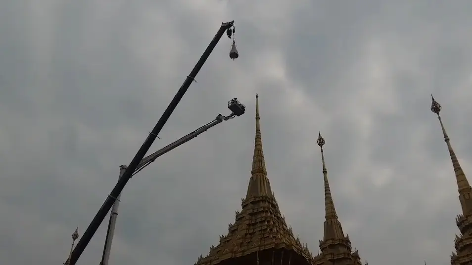 ก่อนที่ พล.อ.สุรยุทธ์ จุลานนท์ องคมนตรี ผู้แทนพระองค์เป็นประธานพิธีบวงสรวงและรื้อถอนพระเมรุมาศ พร้อมอัญเชิญพระนพปฎลมหาเศวตฉัตร ลงจากยอดพระเมรุมาศ โดยมีสำนักสถาปัตยกรรม กรมศิลปากร เป็นผู้รื้อถอน ซึ่งจะใช้เวลา 2 เดือน แล้วเสร็จในวันที่ 15 มี.ค.2561