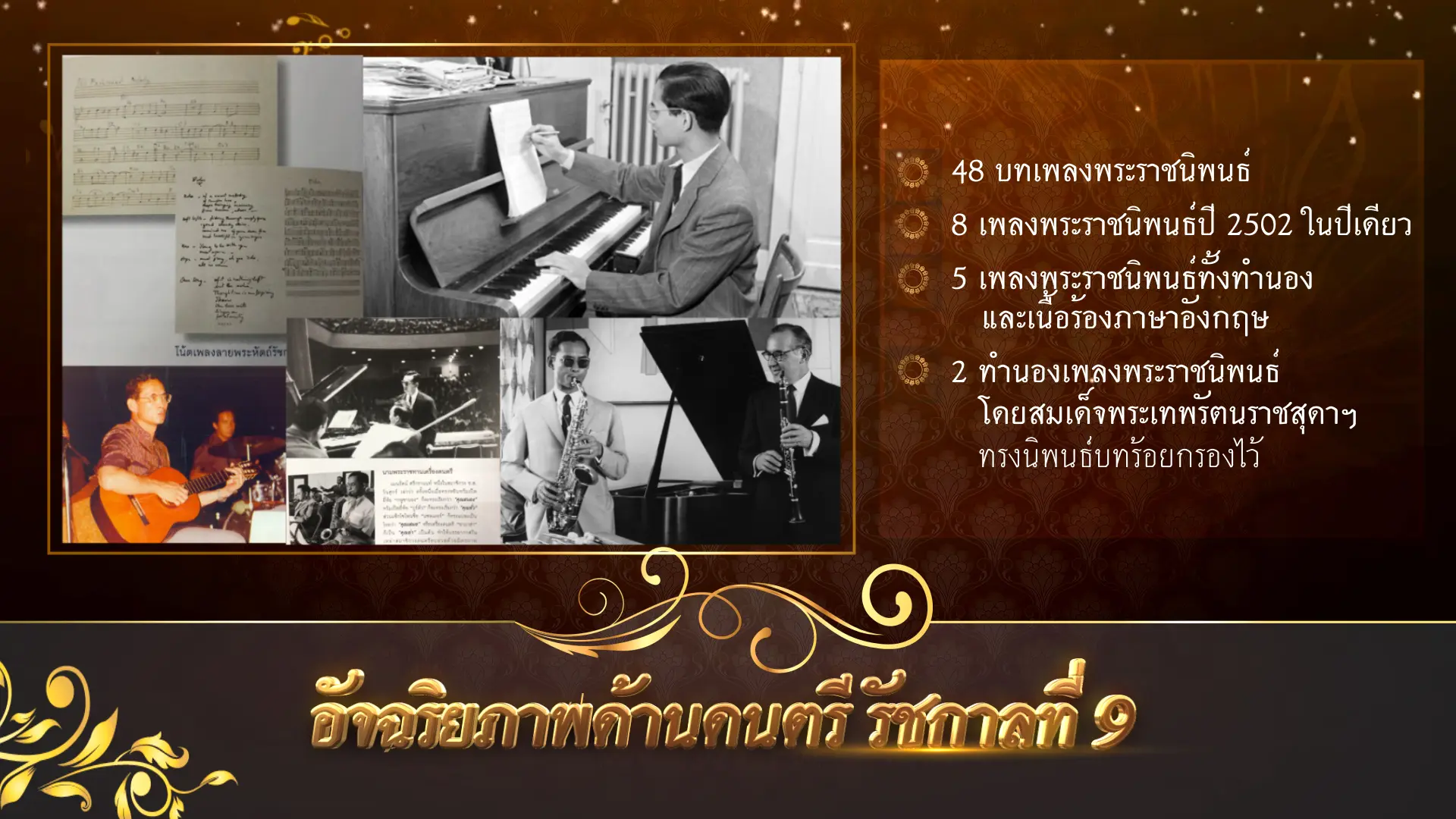 แม้ว่าพระองค์จะทรงพระราชกรณียกิจอย่างหนักในฐานะประมุขของประเทศ แต่ยังทรงพระราชนิพนธ์เพลงไว้ถึง 48 เพลง พระอัจฉริยภาพของพระบาทสมเด็จพระเจ้าอยู่หัว รัชกาลที่ 9 นั้นกล่าวกันว่า หากทรงมีแรงบันดาลใจ ทรงสามารถพระราชนิพนธ์เพลงได้ทันที ดังใน พ.ศ. 2502 ที่เจ้าหญิงอเล็กซานดราแห่งเคนท์เสด็จเยือนประเทศไทย ระหว่างที่ทรงรอเครื่องบินจอดราว 10 นาที ก็ทรงแต่งเพลง Alexandra โดยใช้เวลาไม่กี่นาที หรือใน พ.ศ. 2516 “แมนรัตน์ ศรีกรานนท์” เล่าว่า ทรงแต่งเพลง “เราสู้ แบบสด ๆ โดยทรงขีดเส้นโน้ตห้าเส้นบนซองจดหมายแล้วทรงพระราชนิพนธ์ทำนองเพลงออกมาโดยพลัน”
