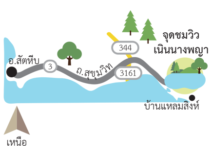 นั่นคือจุดชมวิวเนินนางพญา ที่ตั้งอยู่บนถนนเฉลิมบูรพาชลทิต ถนนเลียบชายทะเลที่ยาวที่สุดในเมืองไทย ที่สามารถขับรถชมวิวทะเล หรือปั่นจักรยานทางไกลมาเรื่อยๆ จากปากน้ำประแส จังหวัดระยอง มาจรดเนินนางพญาที่มี จุดชมวิวขึ้นชื่อแห่งนี้ ซึ่งอยู่ระหว่างอ่าวคุ้งวิมานและ อ่าวคุ้งกระเบนของจังหวัดจันทบุรี