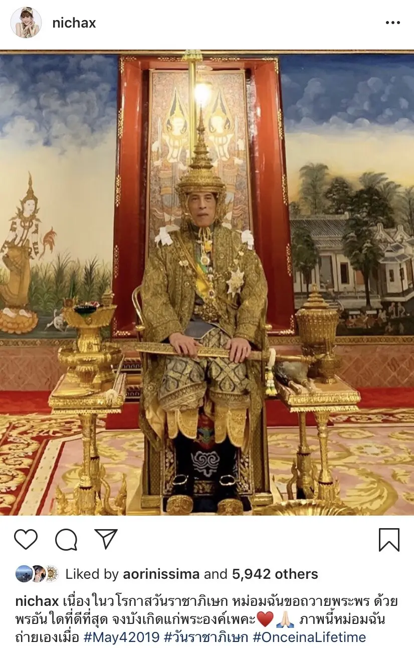 ทูลกระหม่อมหญิงอุบลรัตนราชกัญญ ทรงระบุข้อความว่า “เนื่องในวโรกาสวันราชาภิเษก หม่อมฉันขอถวายพระพร ด้วยพรอันใดที่ดีที่สุด จงบังเกิดแก่พระองค์เพคะ♥️?? ภาพนี้หม่อมฉันถ่ายเองเมื่อ #May42019 #วันราชาภิเษก #OnceinaLifetime”