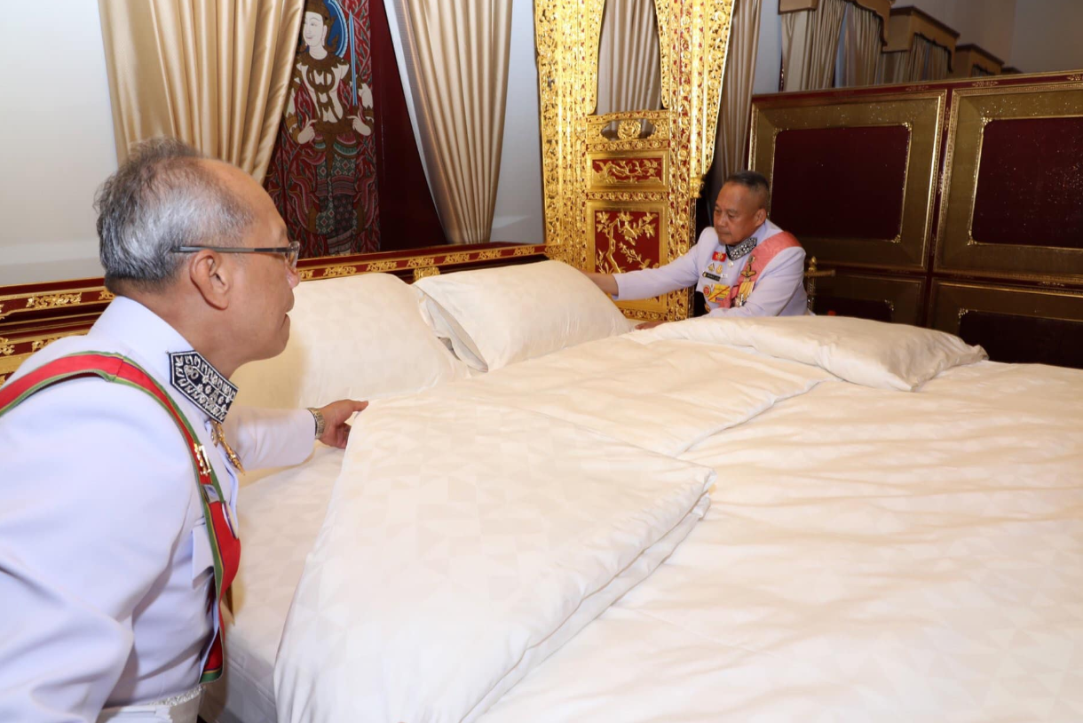 พันโท สมชาย กาญจนมณี ทูลเกล้าฯ ถวายพระแส้ขนหางช้างเผือก, นายเจริญศักดิ์ คารีขันธ์ ทูลเกล้าฯ ถวายจั่นหมากทองคำ, นายมนัส เสือเปลี่ยว ทูลเกล้าฯ ถวายกุญแจทอง ทรงรับแล้ววางไว้ปลายพระที่บนพระแท่นราชบรรจถรณ์ เสด็จขึ้นพระแท่นราชบรรจถรณ์ ทรงเอนพระองค์ลงบรรทมโดยเบื้องขวาลงสู่พระที่