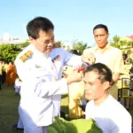 นพ.ธีระเกียรติ ประธานพิธีปลงผมผู้เข้าร่วมบรรพชาอุปสมบท พร้อมกับผู้บริหาร ศธ. และญาติผู้เข้าร่วมโครงการ จุดธูปเทียนบูชาพระรัตนตรัย และเปิดกรวยกระทงดอกไม้หน้าพระฉายาลักษณ์ และถวายราชสดุดีเฉลิมพระเกียรติ ถวายพระพรชัยมลคล พร้อมกล่าวให้โอวาสแก้ผู้เข้าร่วมบรรพชาอุปสมบท จากนั้น ผู้แทนผู้อุปสมบท กล่าวขอขมากรรม และมอบผ้าไตรแก่ผู้เข้าร่วมอุปสมบท จากนั้นได้จัดขบวนนำขบวนแห่นาคไปบรรพชาอุปสมบท ณ พระอุโบสถ วัดมกุฏกษัตริยารามราชวรวิหาร ก่อนจะเดินทางไปศึกษาพระธรรมวินัย และปฎิบัติศาสนกิจ ที่วัดป่าเพิ่มบุญ อ.ปากช่อง จ.นครราชสีมา เป็นเวลา 15 วัน