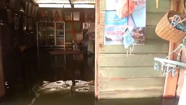 ชาวบ้านต้องช่วยเหลือตัวเองด้วยการนำโต๊ะตั้งกับพื้นบ้านเพื่อใช้เป็นที่เก็บสิ่งของมีค่า และบริเวณที่เป็นที่นอน ซึ่งชาวบ้านเรียกว่า “หนุนนอน” ต้องใช้ชีวิตอย่างยากลำบาก เนื่องจากต้องนอนในบ้านที่ถูกน้ำท่วมเสี่ยงกับสัตว์มีพิษที่อาจจะเข้ามาภายในบ้านได้ทุกเวลา ทั้งยังขาดห้องสุขา ทำให้ต้องพายเรือออกไปปลดทุกข์กลางน้ำ