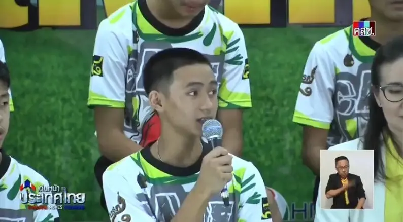 ขอบคุณคลิปจาก www.news.sky.com/video/emotional-thai-boys-leave-hospital-11441643