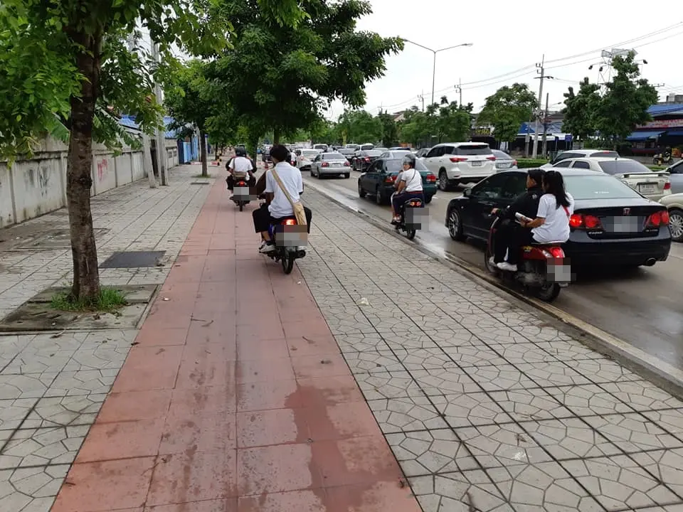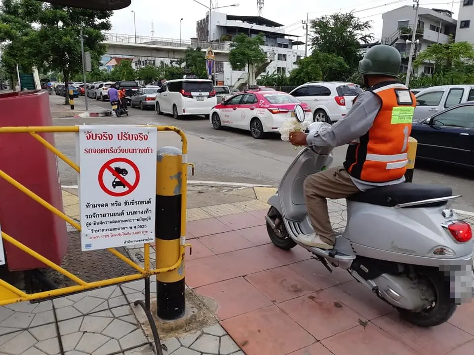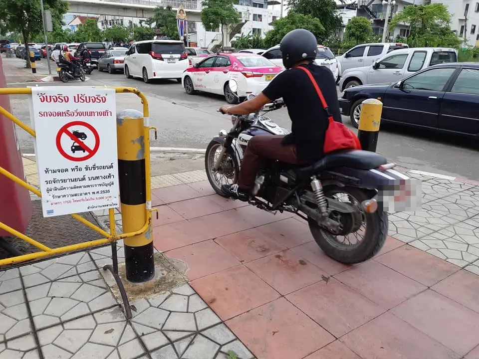 ภาพและข้อความร้องสื่อจากเฟซบุ๊กชื่อ Yosskorn Sukarawan ระบุเหตุการณ์บริเวณ ถ.เทพรักษ์ ถนนตัดใหม่วัชระพล – สะพานใหม่ “ณ ถนนเทพรักษ์ มีรถจักรยายนต์ขับขี่บนทางเท้าเยอะทุกวันโดยเฉพาะช่วงเช้า และมีการบีบแตรขอทางด้วย อันตรายต่อผู้ใช้ทางเท้า ทั้งๆที่มีป้ายปรับจริงจับจริงอยู่ตรงหน้า ไม่รู้ว่ามีการจับย้อนหลังกันบ้างไหม มีการดูกล้องวงจรปิดย้อนหลังกันบ้างไหม คนเดินทางเท้าจะถูกรถเฉียวหลายครั้งแล้ว บางคันพาลูกไปโรงเรียน แล้วจะสอนลูกให้ทำตามกฎหมายยังไงขนาดผู้ปกครองเองยังไม่ทำตาม ผมก็เห็นใจพวกพี่นะครับว่ารถมันติดเลยขึ้นมาขี่บนทางเท้า แต่พวกพี่ไม่เห็นใจคนเดินทางเท้าบ้างเลย อยากให้มีการแก้ไขทุกถนนจริงๆ ครับ #สถานีตำรวจบางเขน #เทศกิจกรุงเทพมหานคร”