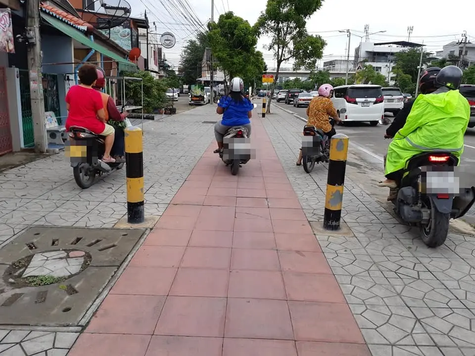 ณ ถนนเทพรักษ์ มีรถจักรยายนต์ขับขี่บนทางเท้าเยอะทุกวันโดยเฉพาะช่วงเช้า และมีการบีบแตรขอทางด้วย อันตรายต่อผู้ใช้ทางเท้า…
