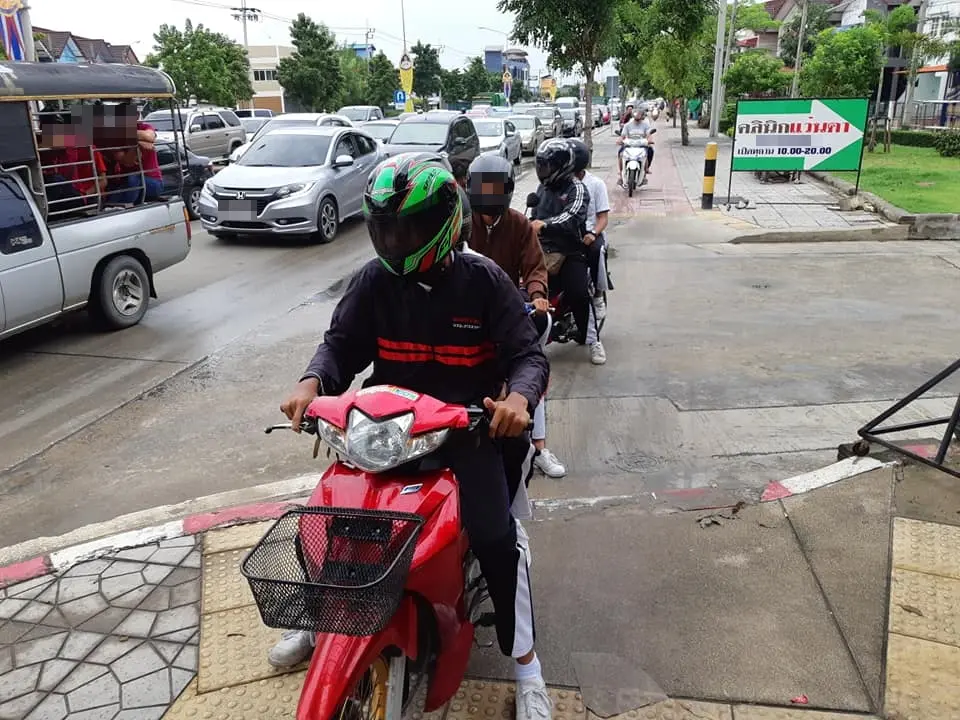 ถือเป็นการฝ่าฝืนกฎจราจรอย่างไม่เกรงกลัวกฎหมายกับภาพรถจักรยานยนต์จำนวนมากขึ้นมาขับขี่บนทางเท้าย่าน ถนนเทพรักษ์ หนุ่มโวยฝ่าฝืนกันทั้งที่มีป้ายเตือน ไม่พอบีบแตรไล่คนเดินบนทางเท้า เกือบเฉี่ยวชนหลายครั้ง